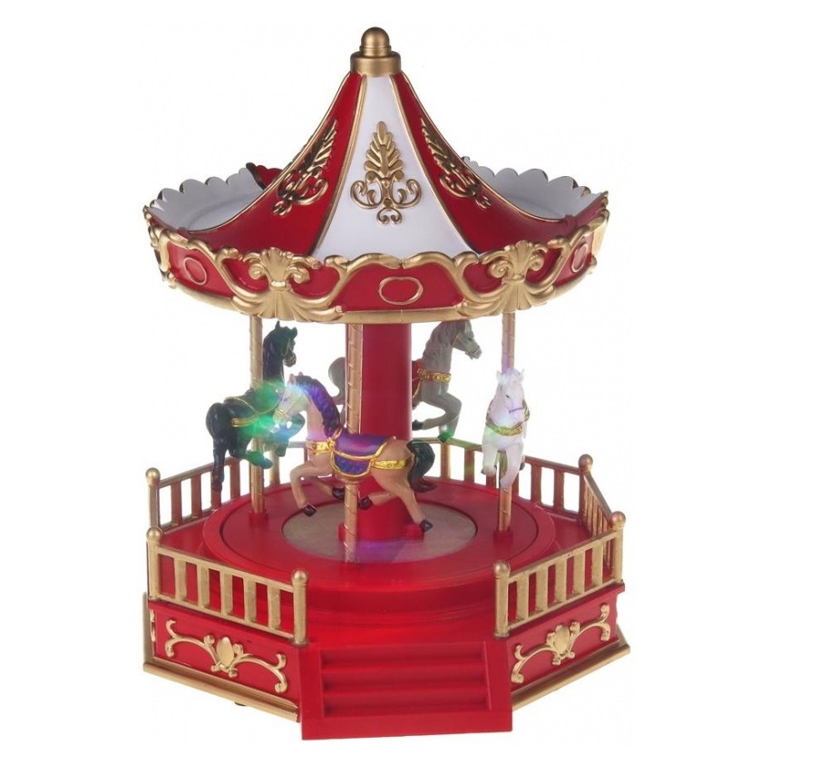 Decoratiune Craciun muzicala, Carusel, LED multicolor, 3xAA, 18.3x20x23 cm