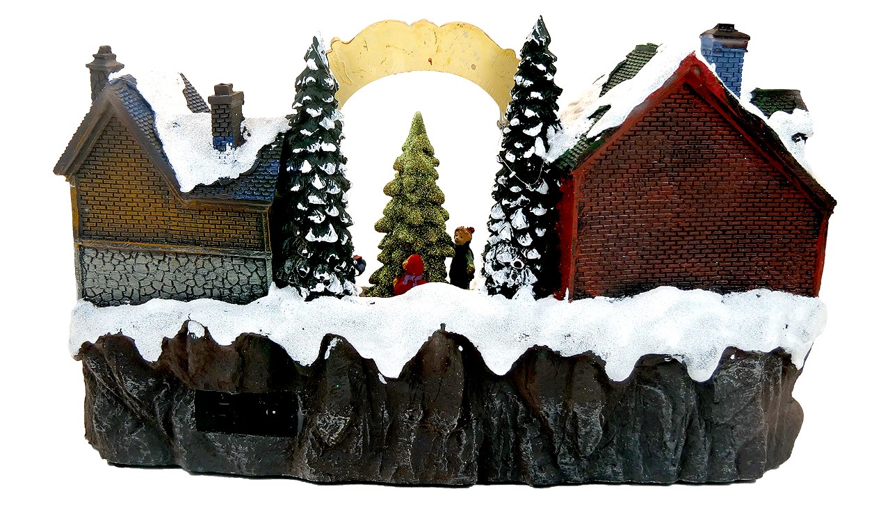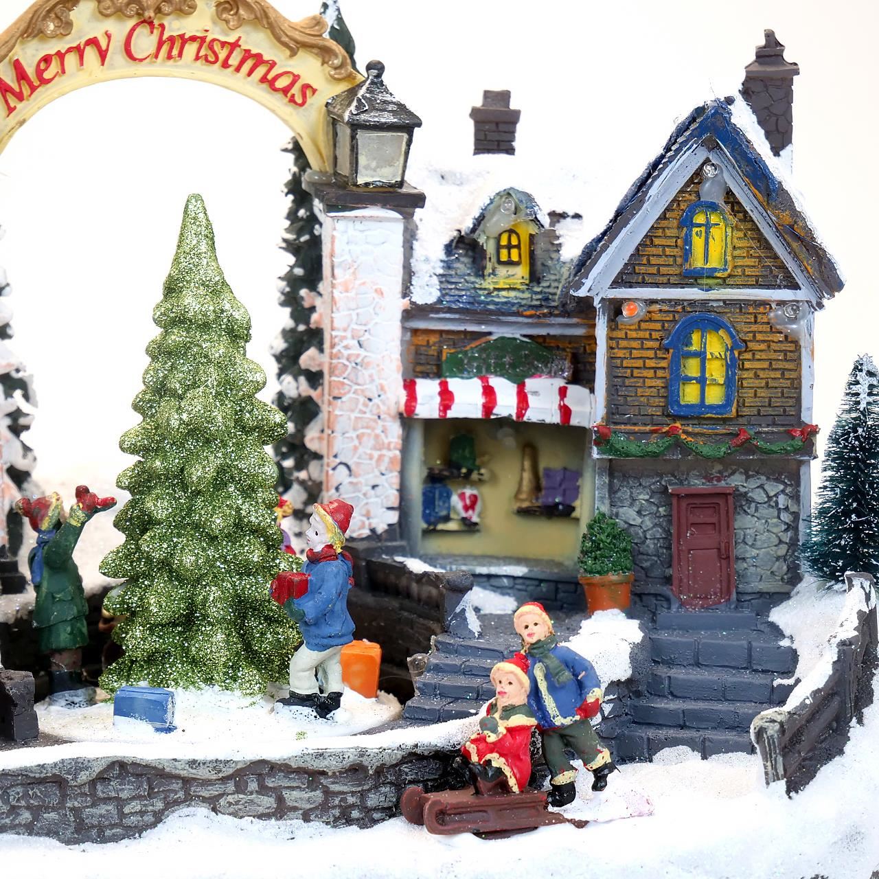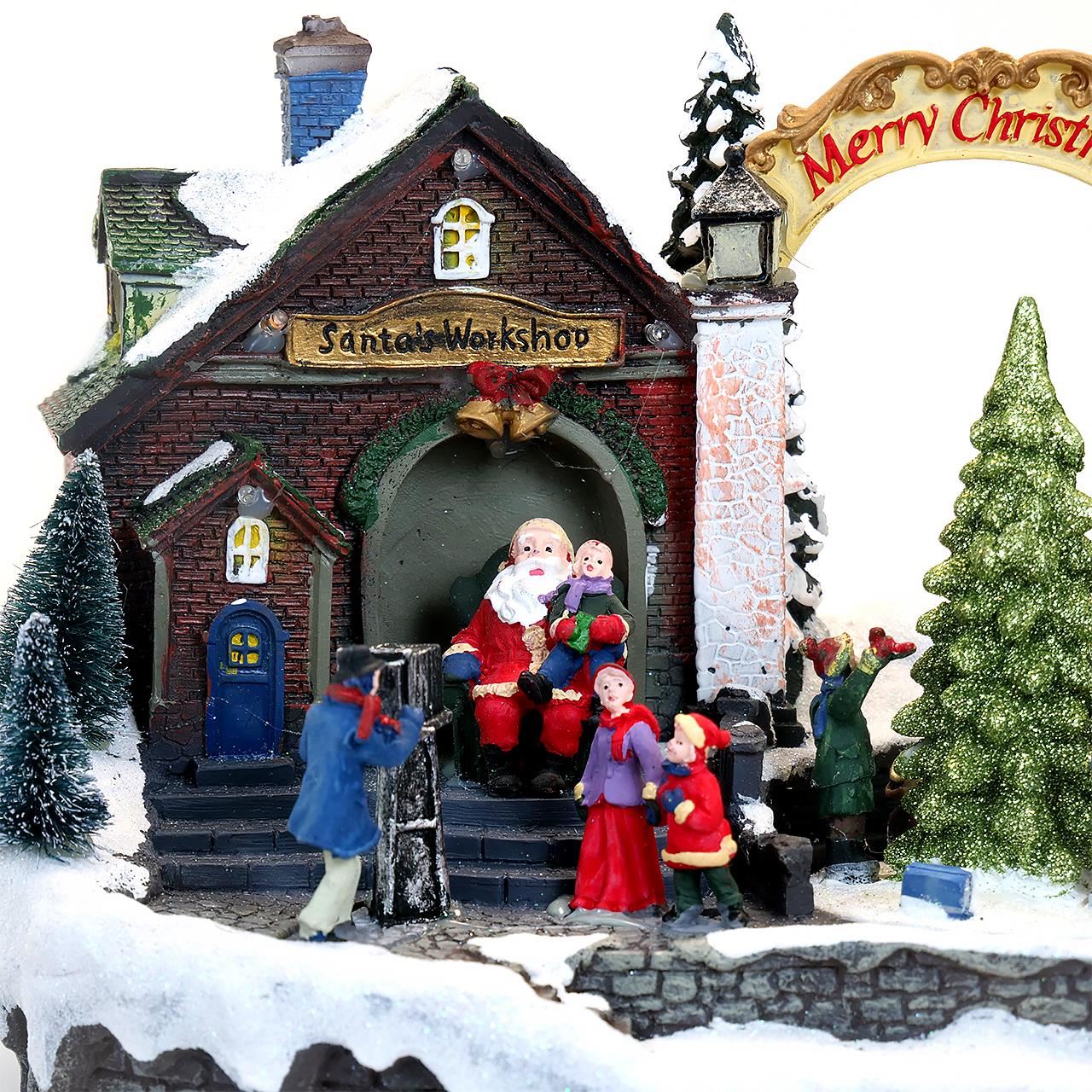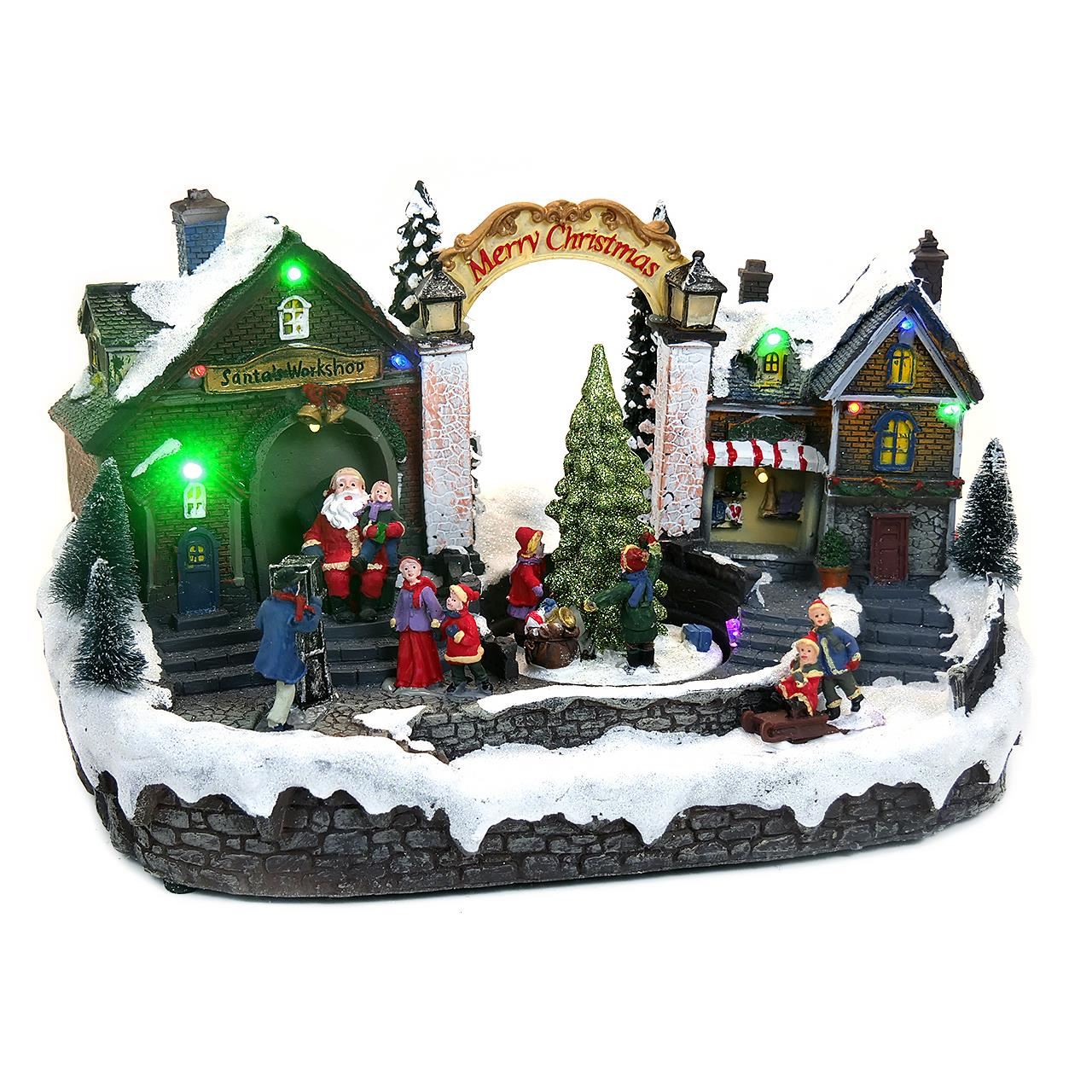 Decoratiune Craciun muzicala, polirasina, Satul lui Mos Craciun, LED, 3xAA, 33x18x20 cm