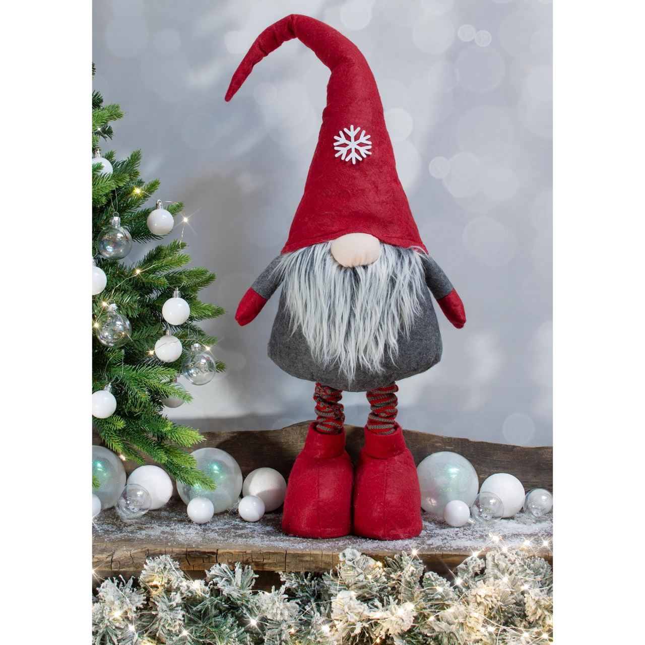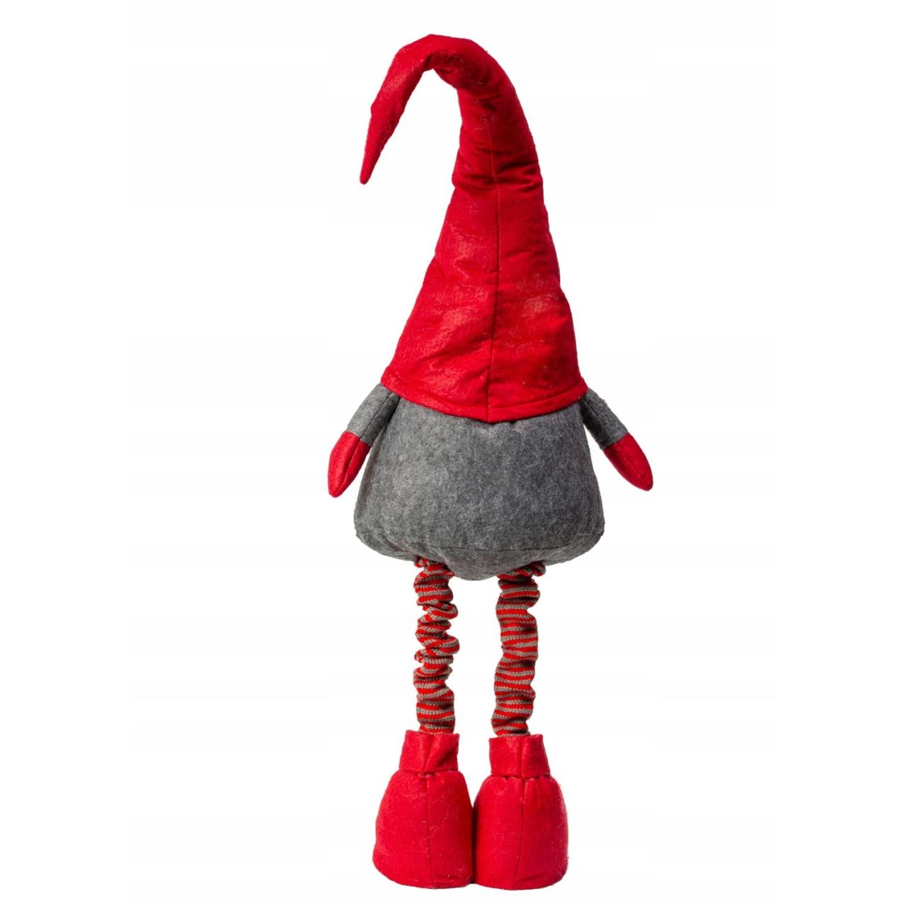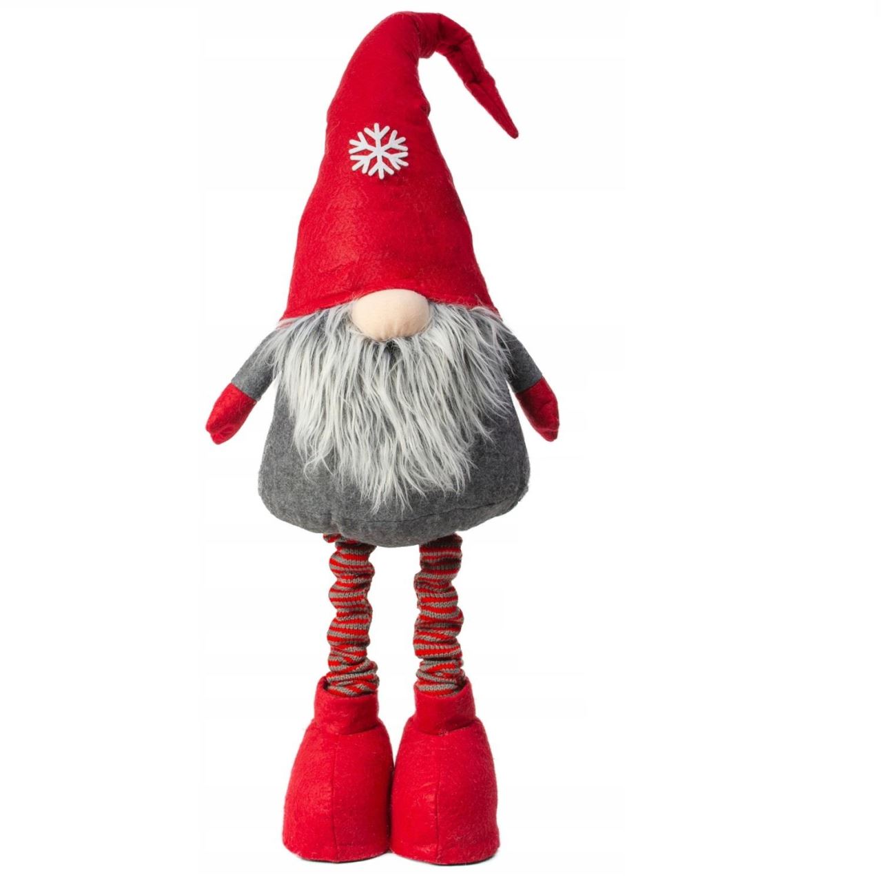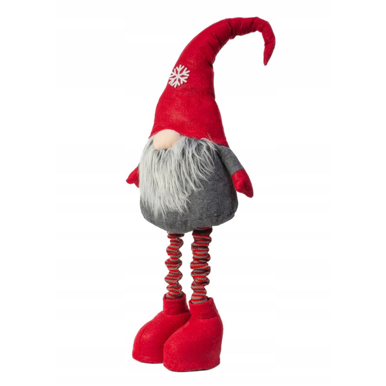 Decoratiune Craciun, pitic cu barba, gri si rosu, picioare telescopice, 90/130 cm
