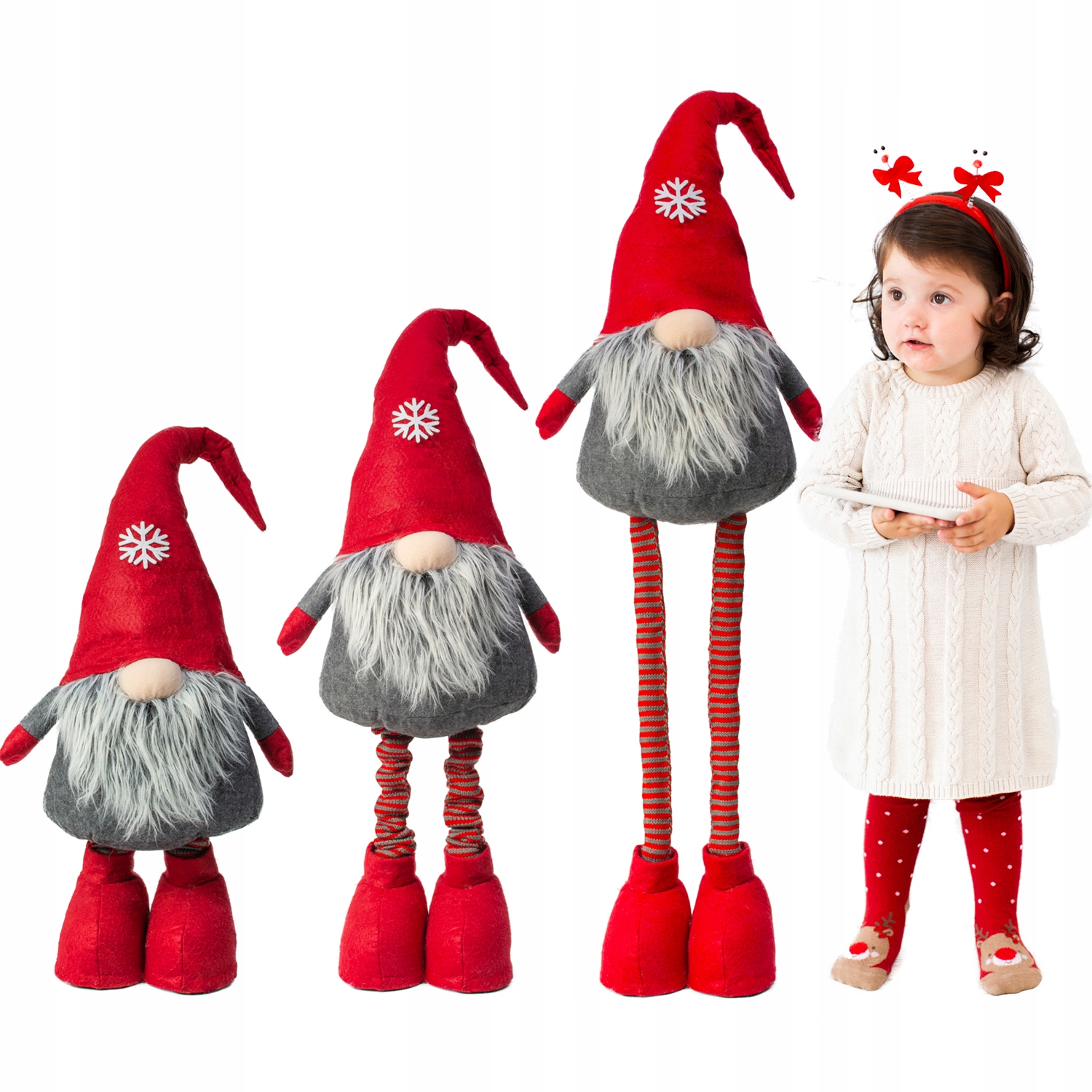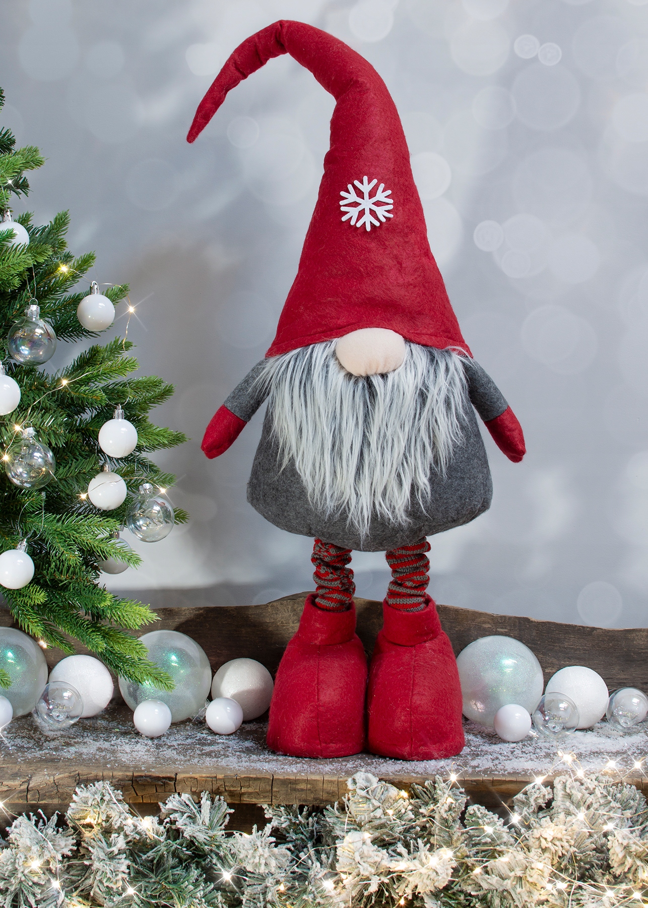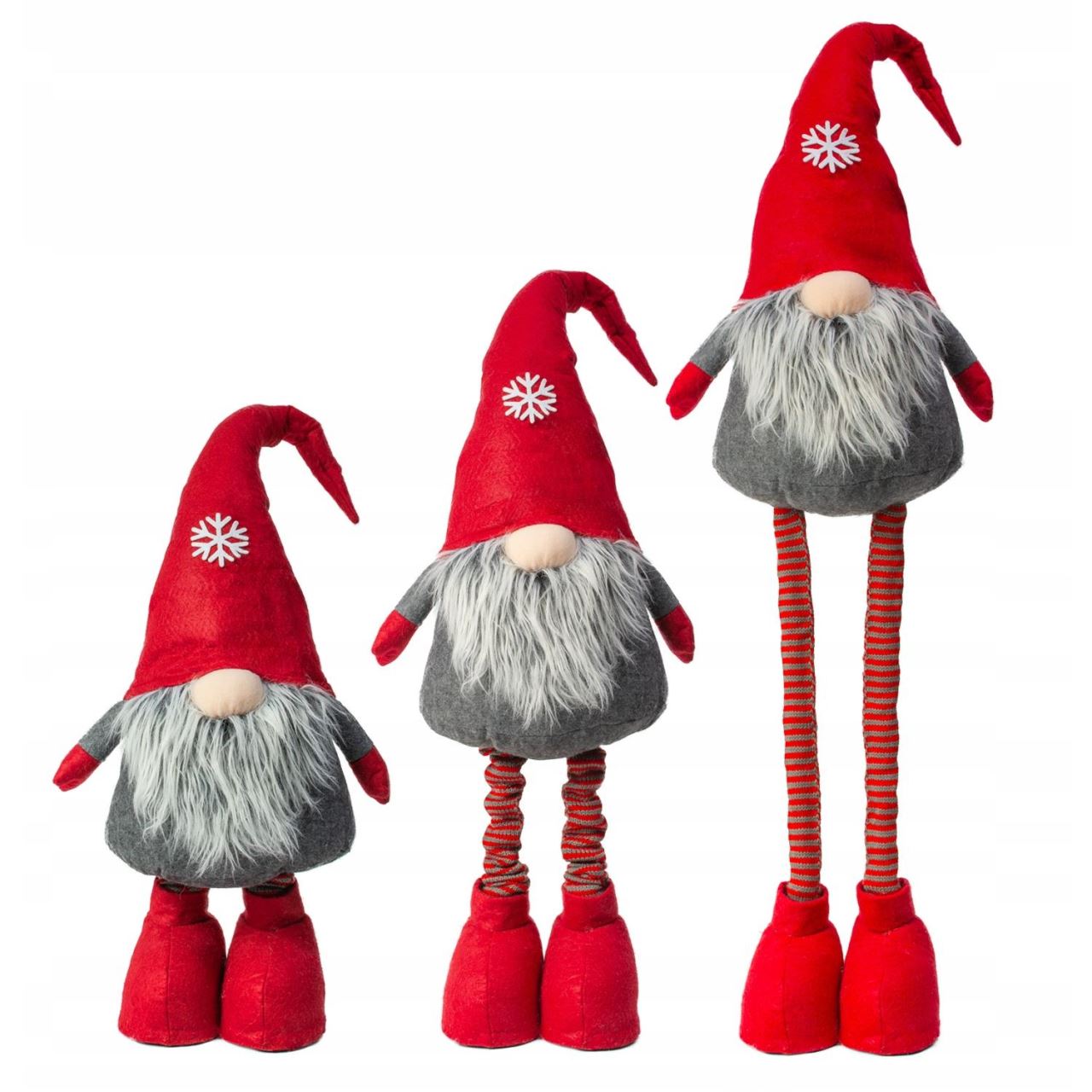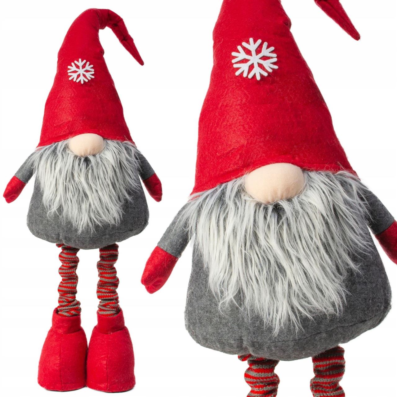 Decoratiune Craciun, pitic cu barba, gri si rosu, picioare telescopice, 90/130 cm