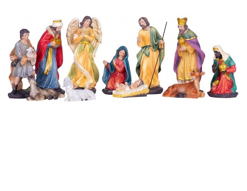 Decoratiune Craciun, polirasina, Nasterea lui Iisus, set 11 figurine, 12.7 cm, Magic Home