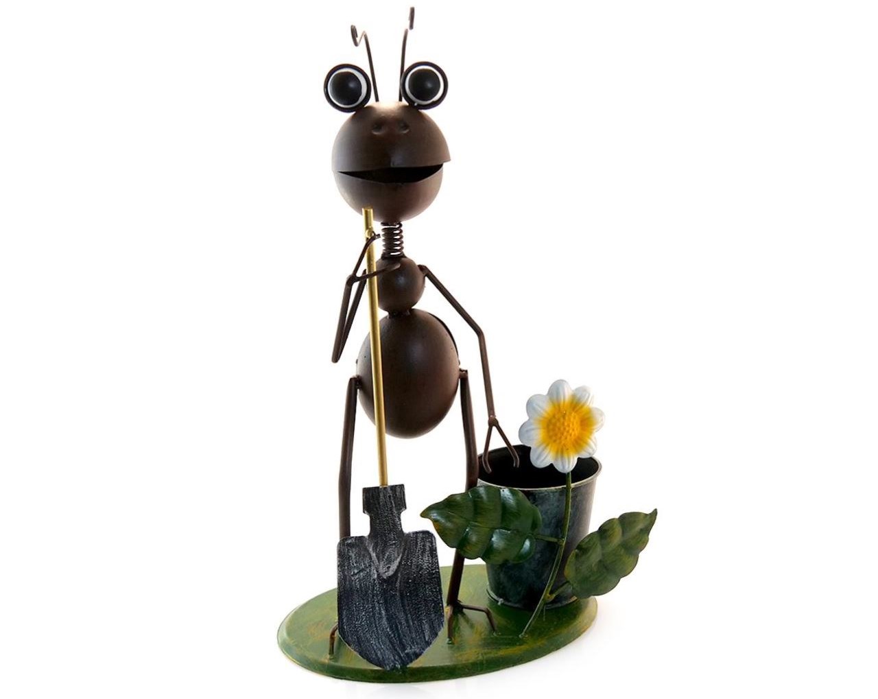 Decoratiune gradina, metalica, furnica cu lopata, 26x14x40 cm
