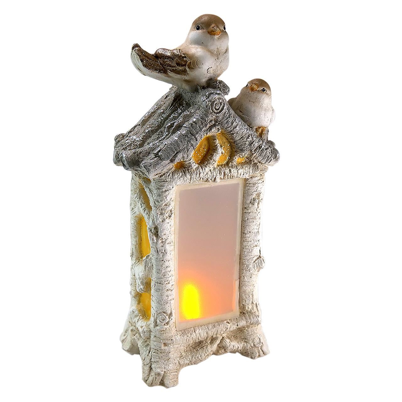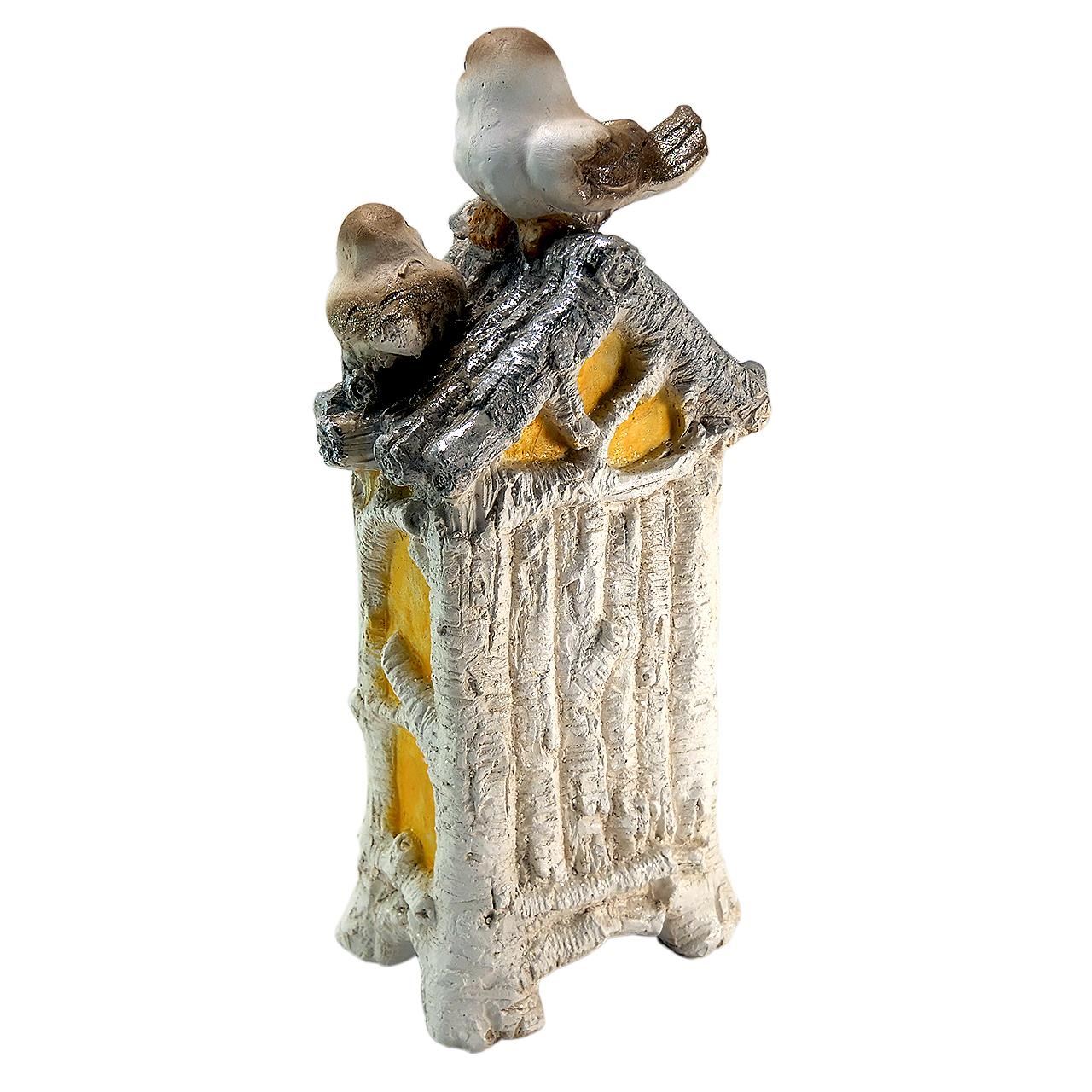 Decoratiune iarna, pasari si semineu, ceramica, LED, 3xAAA, 20x11x44 cm