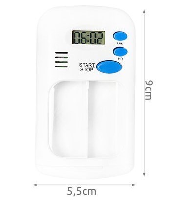 Dozator/organizator pentru medicamente, cu alarma, 2 compartimente, 5.5x9 cm