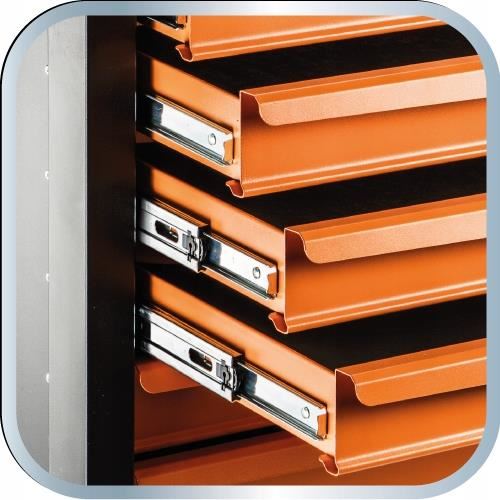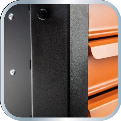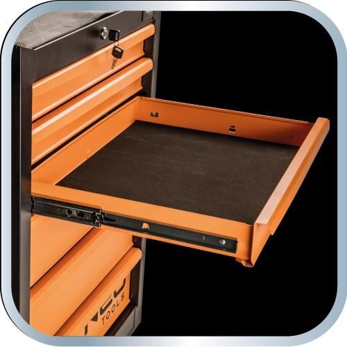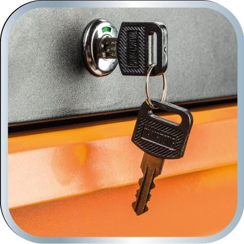 Are 6 sertare practice inchise/fixate cu o incuietoare cu clichet care protejeaza unltele in timpul transportului.