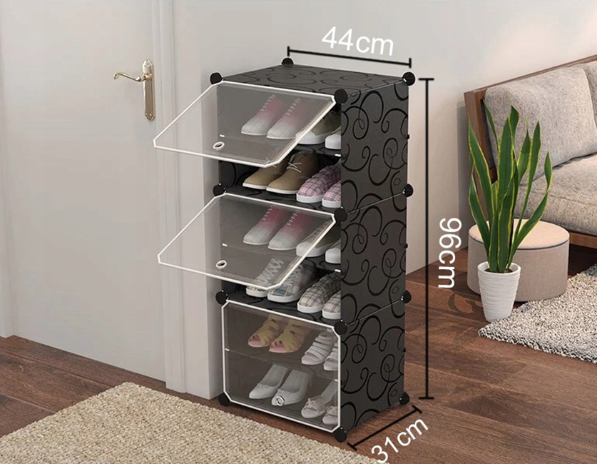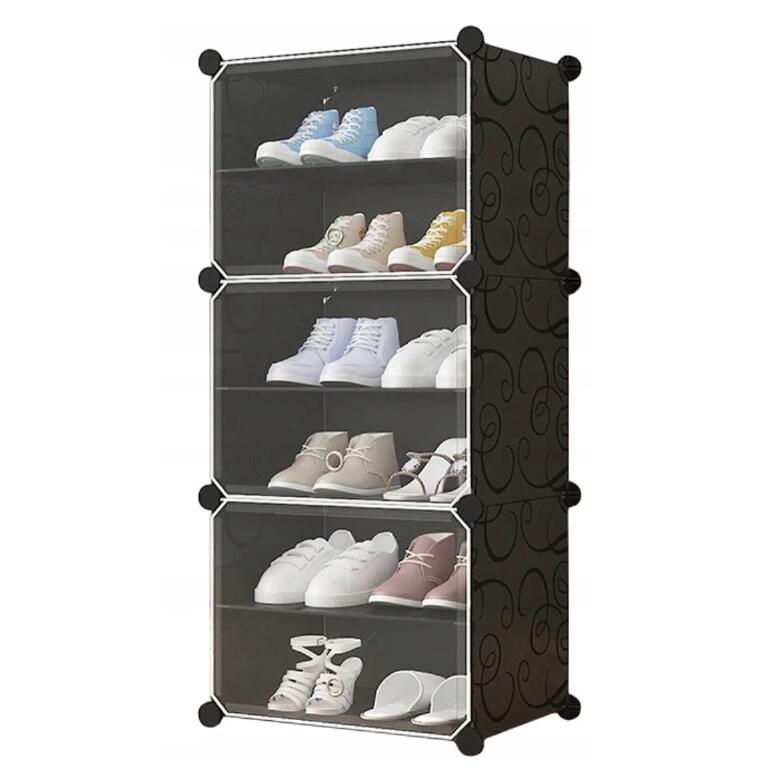 Dulap modular pentru depozitare incaltaminte, Mufart, plastic, 3 compartimente, 6 rafturi, 44x31x96 cm