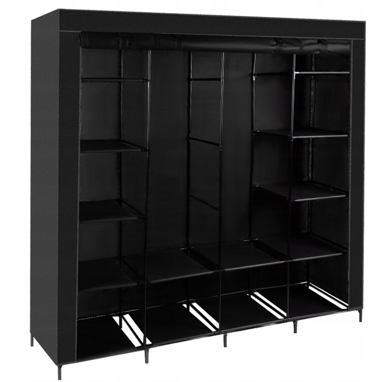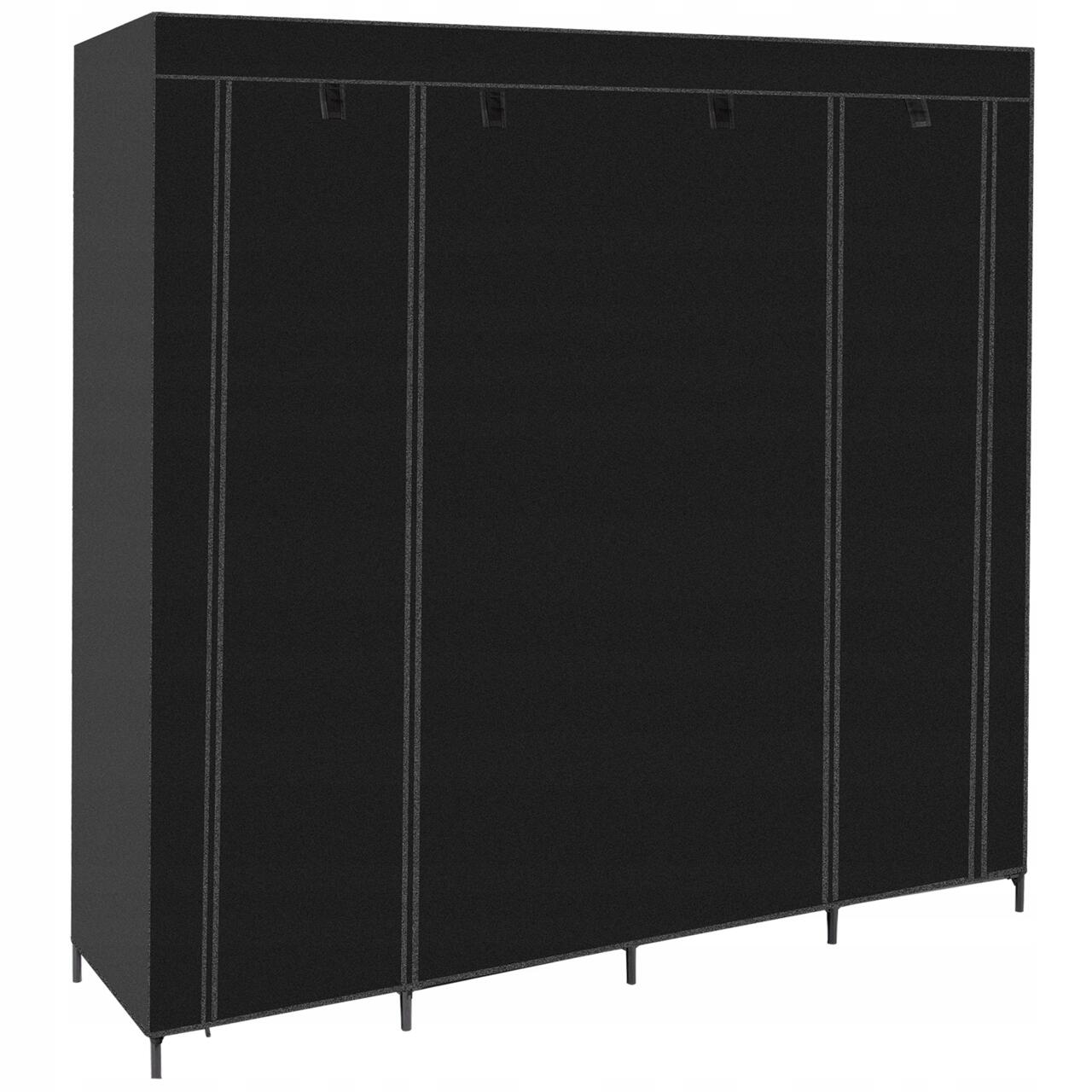 Dulap pliabil, Ruhhy, textil si metal, 14 rafturi, negru, 170x42x170 cm