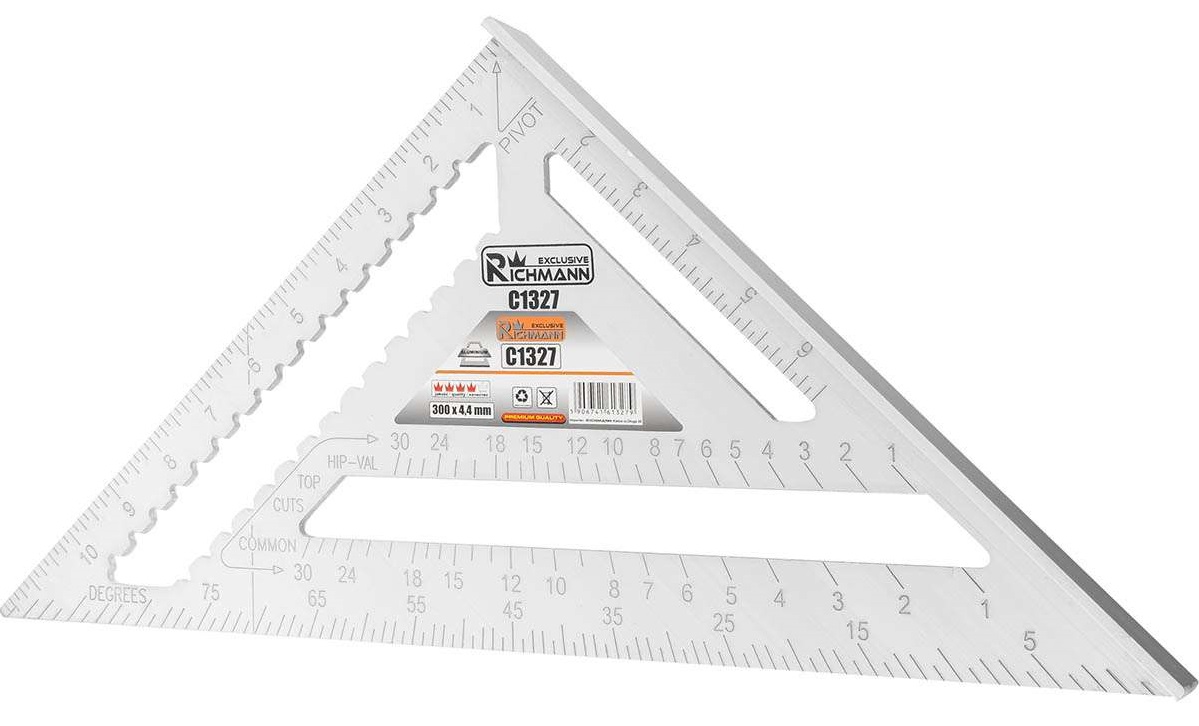 Echer tamplar/dulgher, aluminiu, triunghiular, cu picior, 300x4.4 mm, Richmann Exclusive
