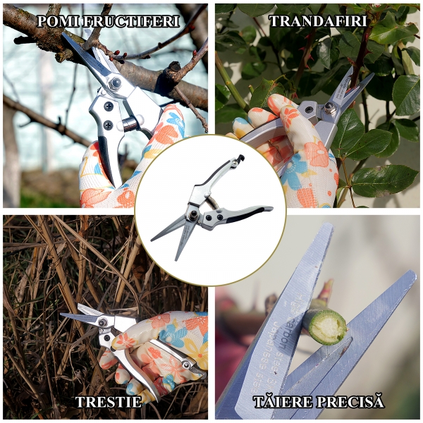 - Taie USOR si obtine o taietura CURATA care nu va RANI plantele, ramurile, trandafirii, arbustii, vita de vie si gardurile vii taiate folosind foarfeca gradina profesionala.