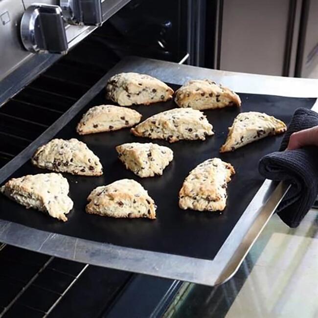 - Folosirea covorasului la prajire sau coacere ajuta la mentinerea gratarului sau cuptorului curat. Covorasul poate fi spalat manual sau in masina de spalat vase si nu este nevoie sa folositi substante chimice.
