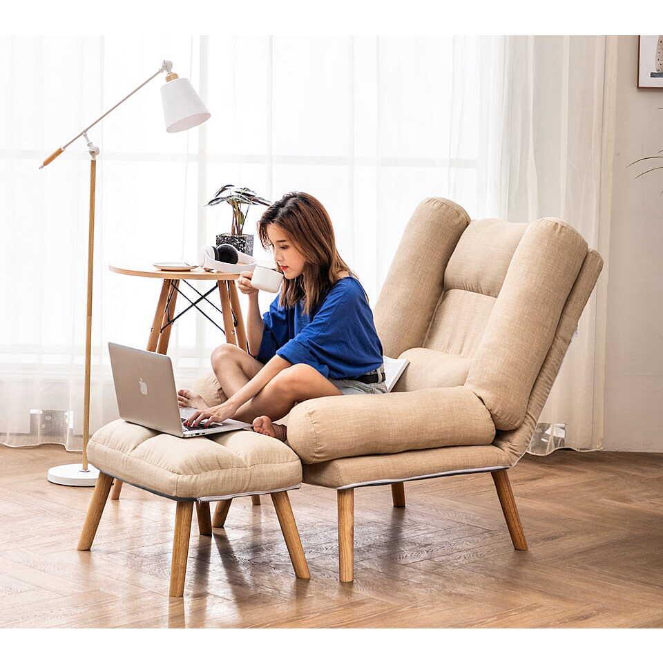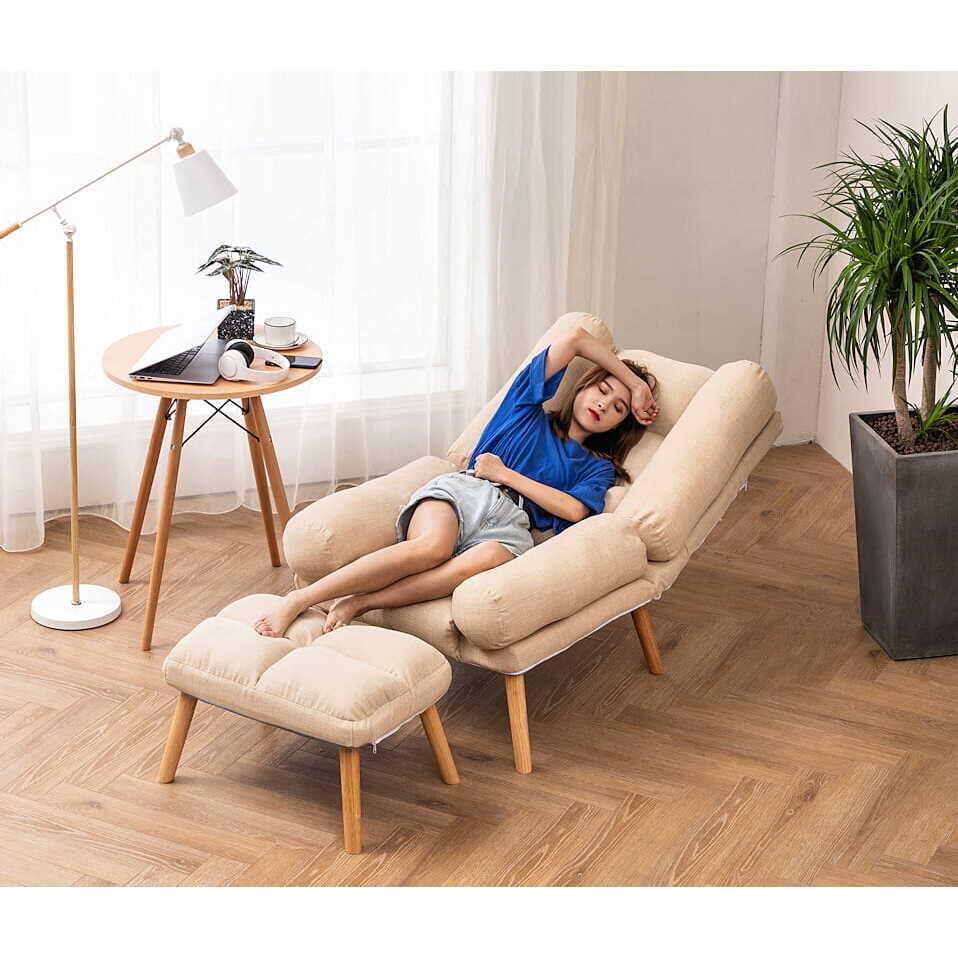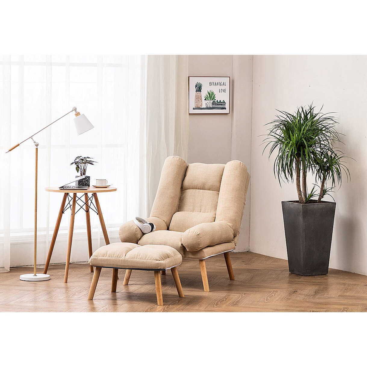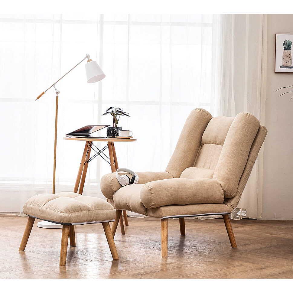 Fotoliu cu taburet, model scandinav, Dior, bej, 75x50x90 cm