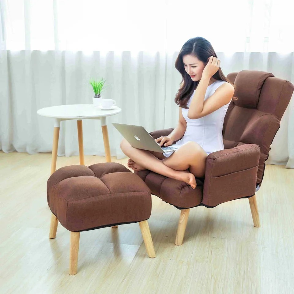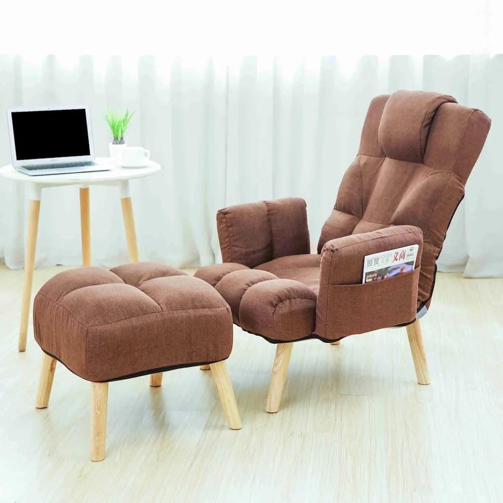 Fotoliu cu taburet, model scandinav, maro, SELSE
