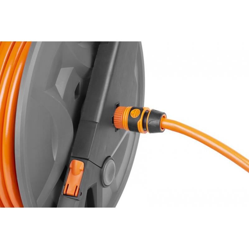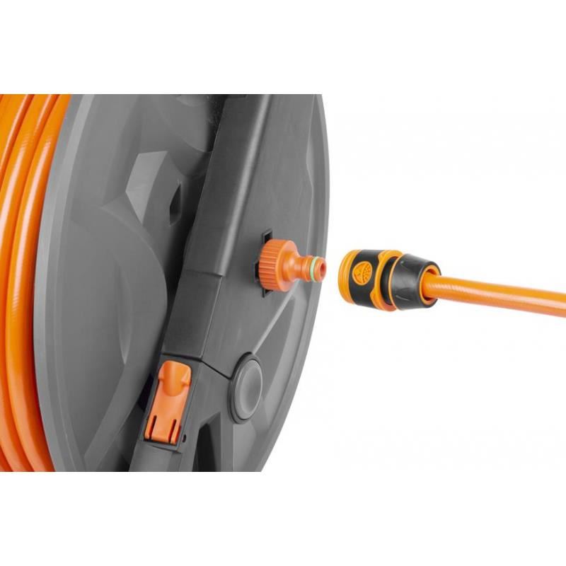 - Transport si depozitare facila: Caruciorul cu roti permite deplasarea usoara a furtunului prin gradina