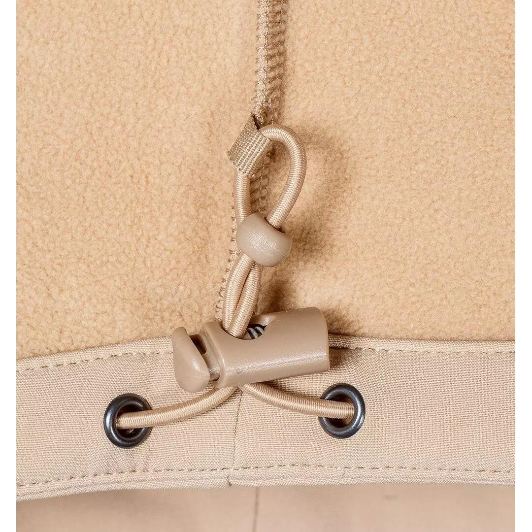 - Protectia suplimentara si versatilitatea sunt oferite de insertiile softshell tricotate, plasate pe tiv, gulerul ridicat, maneci, buzunare si partea de jos a hanoracului. Aceste sectiuni plasate strategic cresc rezistenta la conditii meteorologice dure si deteriorari mecanice, mentinand in acelasi timp flexibilitatea si libertatea de miscare.