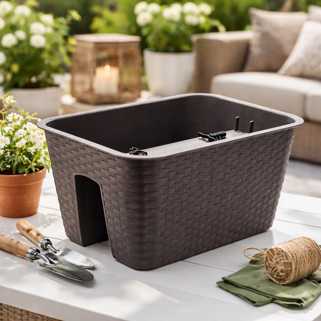 Maximizeaza spatiul pe balcon cu ghiveciul Ratolla Railing, special conceput pentru a fi montat direct pe balustrada. Cu un design ingenios care imita textura ratanului impletit, acest ghiveci se asaza stabil pe ambele parti ale barei metalice, oferind un decor floral spectaculos atat spre interiorul, cat si spre exteriorul balconului tau. Este solutia estetica perfecta pentru a scapa de suportii metalici inestetici.