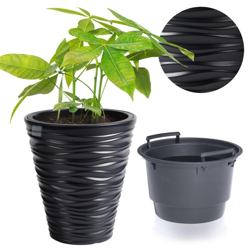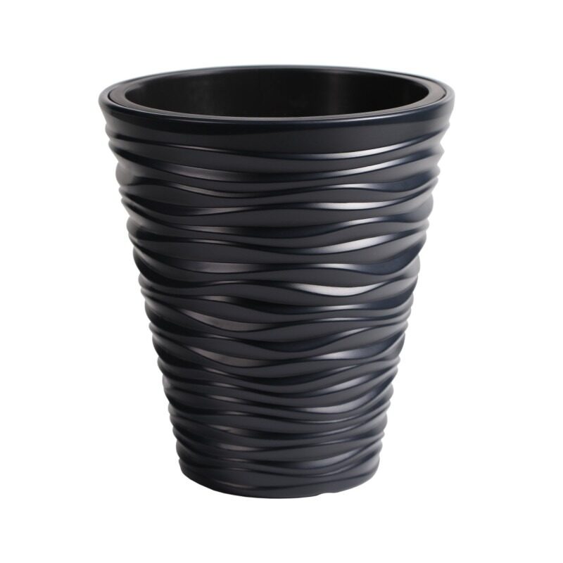 - Santurile orizontale de pe suprafata ghiveciului imita modelul dunelor desertului, conferindu-i un aspect natural si elegant. Culoarea antracit adauga eleganta, fiind potrivit atat pentru interioarele moderne, cat si pentru cele clasice.