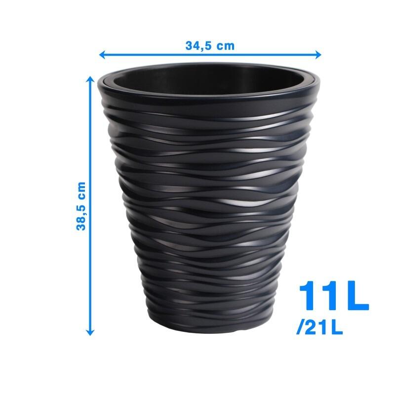 Ghiveci decorativ de flori, rotund, antracit, 11/21 L, 34.5x38.5 cm, Sand