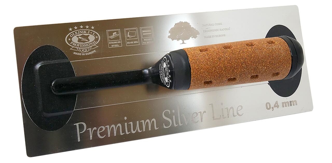 Gletiera inox, intarita, Premium Silver, Medium Flex, 30.5x12 cm x 0.4 mm, maner pluta, Olejnik