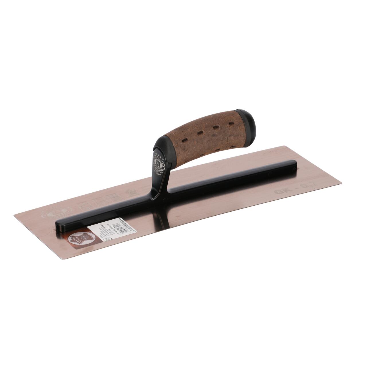 Gletiera inox, lama curbata, finisare benzi gips carton, Premium Gold, 30.5x12 cm x 0.65 mm, maner piele Alcantara, Olejnik