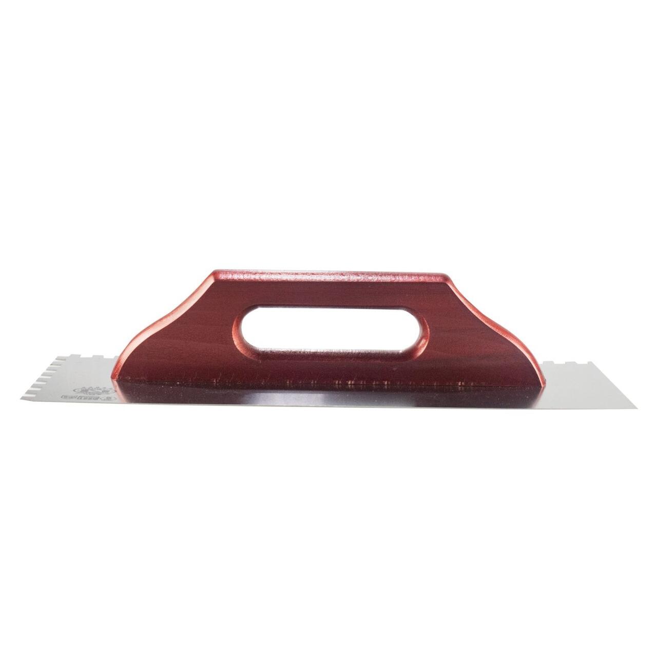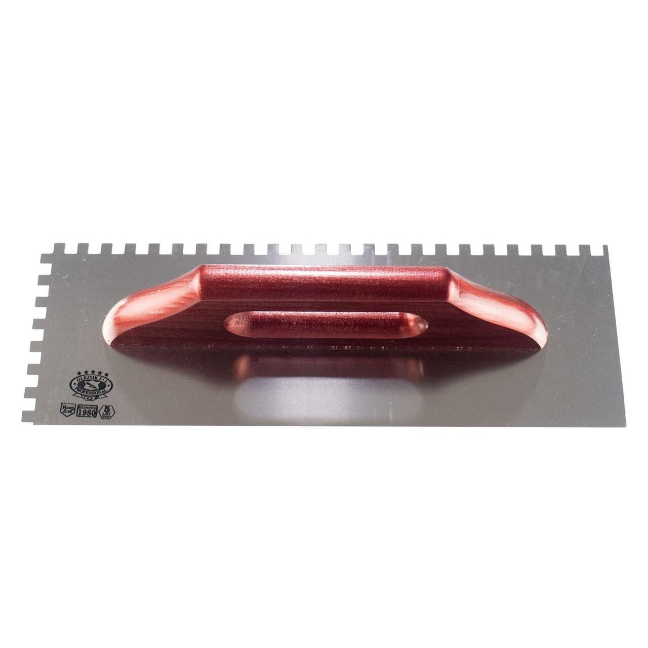 Gletiera inox, pentru adezivi, cu zimti, 8x8 mm, 48x13 cm x 1.2 mm, maner lemn lung, Olejnik