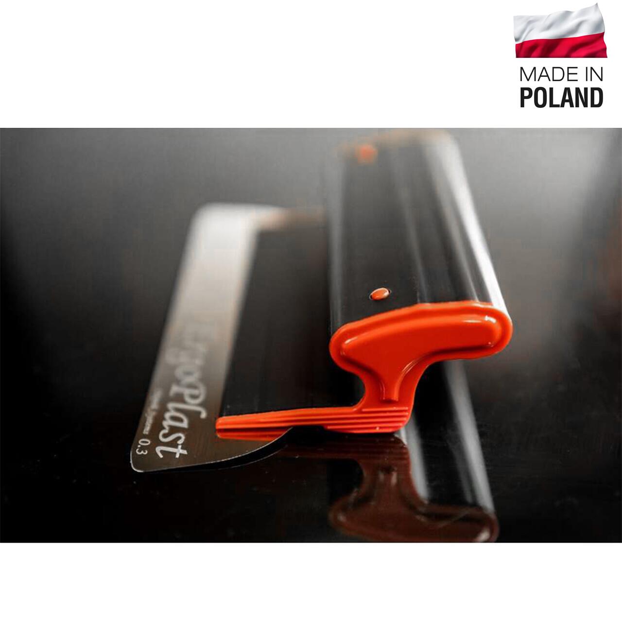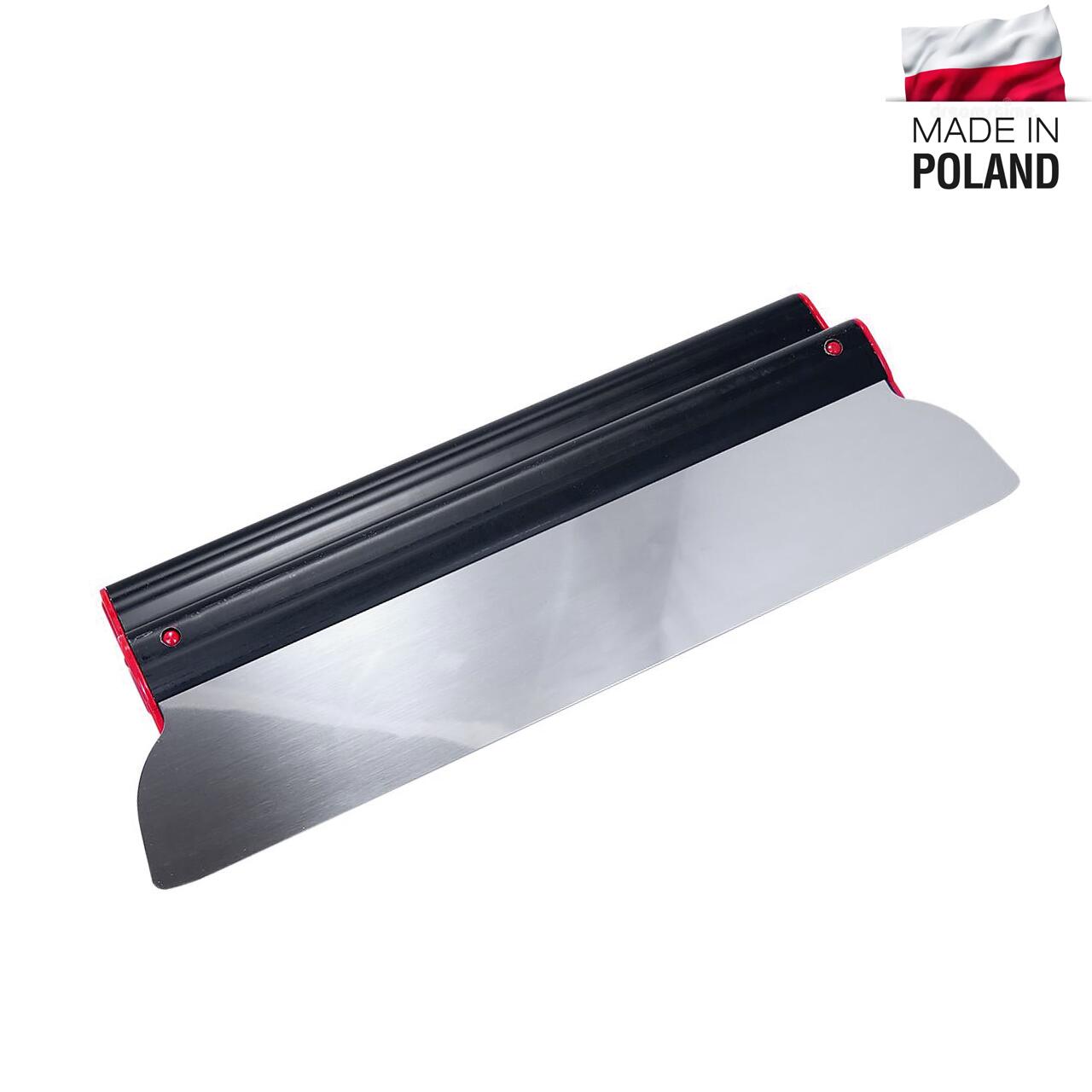 - Flexibilitatea lamei foarte subtiri, confectionate din inox de cea mai buna calitate, permite nivelarea materialelor de umplere si de finisare, permitand aplicarea materialului intr-un strat foarte subtire. Netezeste perfect suprafata care este, practic, gata de amorsare si vopsire, oferind precizie si cel mai fin finisaj, eliminand practic slefuirea. Prin structura flexibila a lamei, aceasta pastreaza materialul pe suprafata de lucru si pe lama, minimalizand astfel risipa de material si nevoia de curatare.