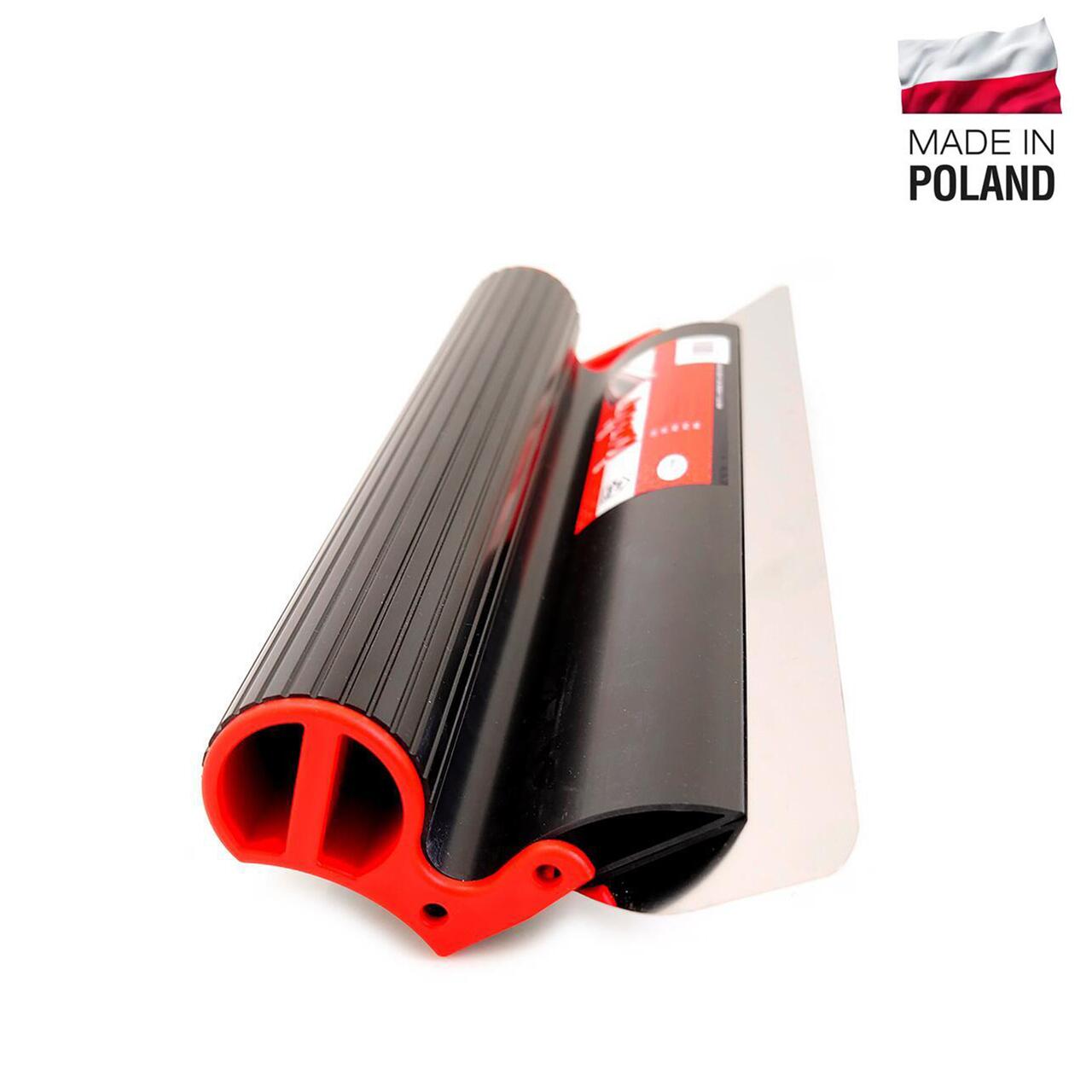 - Flexibilitatea lamei foarte subtiri, confectionate din inox de cea mai buna calitate, permite nivelarea materialelor de umplere si de finisare, permitand aplicarea materialului intr-un strat foarte subtire. Netezeste perfect suprafata care este, practic, gata de amorsare si vopsire, oferind precizie si cel mai fin finisaj, eliminand practic slefuirea. Prin structura flexibila a lamei, aceasta pastreaza materialul pe suprafata de lucru si pe lama, minimalizand astfel risipa de material si nevoia de curatare.