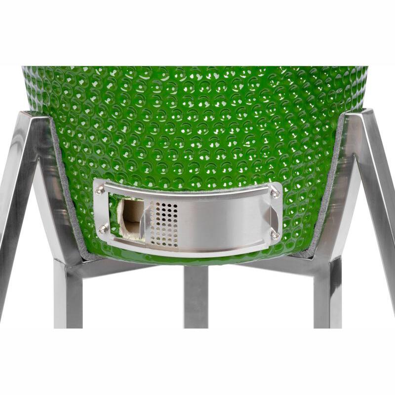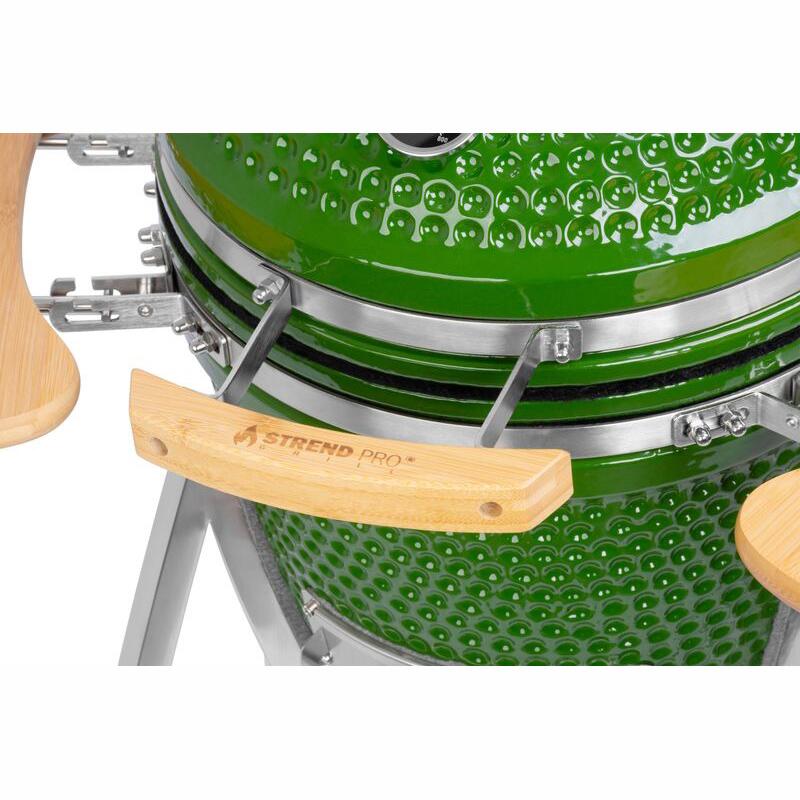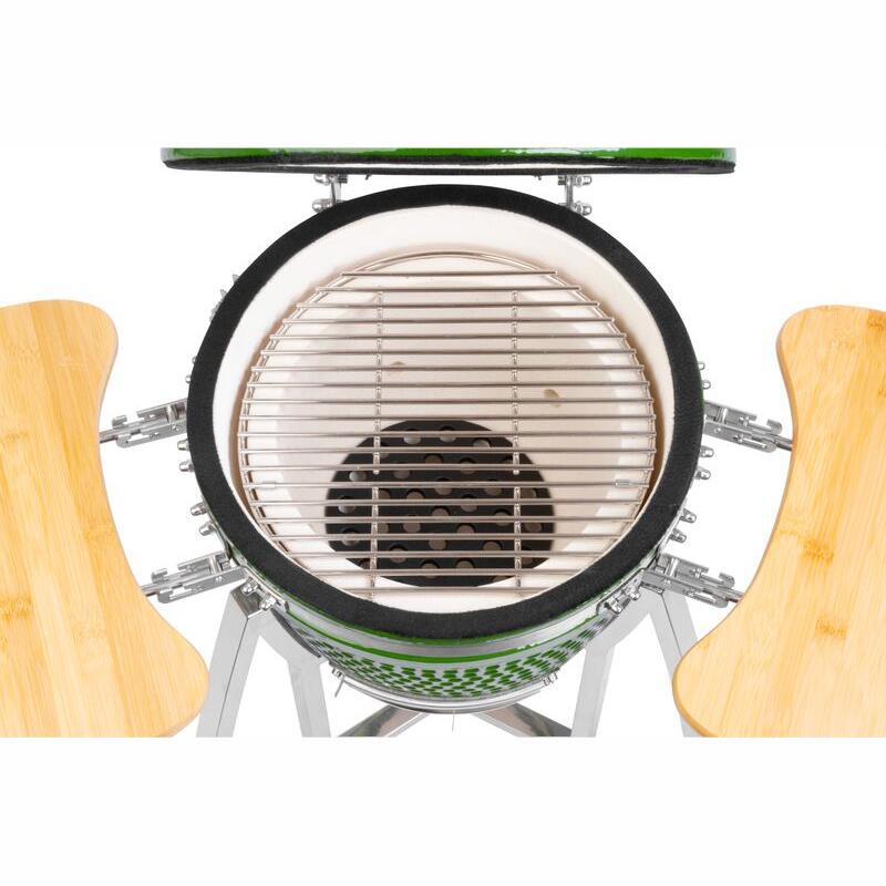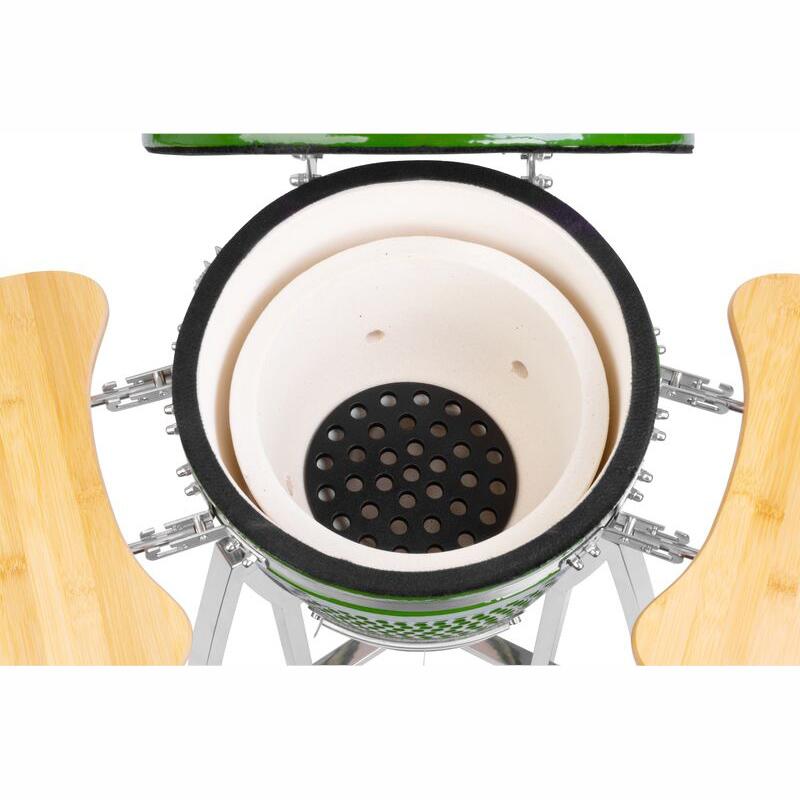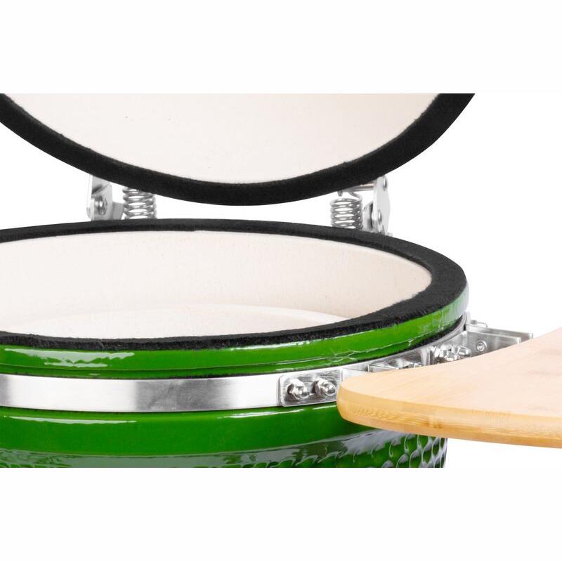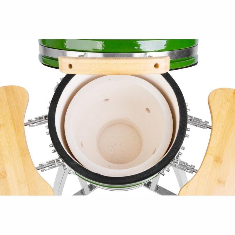 Gratar gradina cu carbuni, grill rotund, ceramic, cu roti, capac, rafturi, verde, 40x97.5 cm, Kamado Egg 16