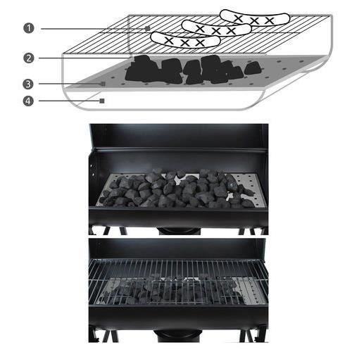 - Tava si grill suplimentar: Gratarul dispune de o tava care protejeaza focarul si faciliteaza curatarea gratarului, iar grill-ul suplimentar va permite sa mentineti mancarea calda.