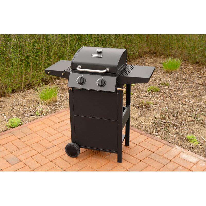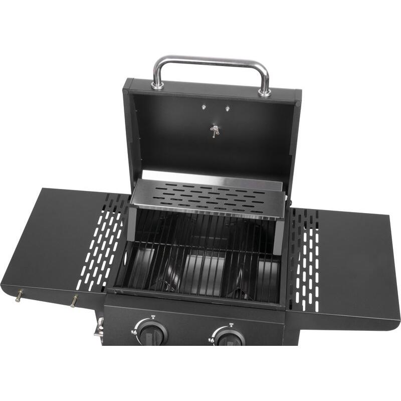 Gratar gradina, grill dreptunghiular, cu gaz, 2 arzatoare, cu roti, capac, rafturi, 96x50x100 cm, BBQ Andora