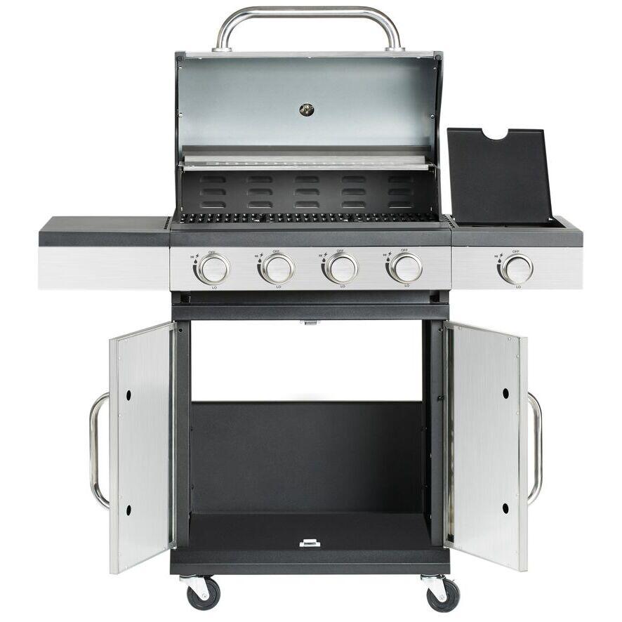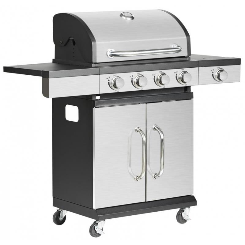Gratar gradina/grill, dreptunghiular, cu gaz, 4+1 arzatoare, cu roti, capac, 120x48x110 cm, BBQ Forbes