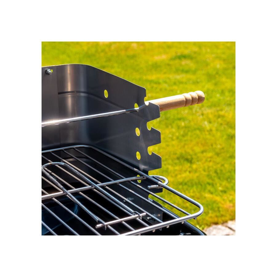 Gratar gradina, grill dreptunghiular, cu roti, rafturi, rotisor, 65x58x87.5 cm