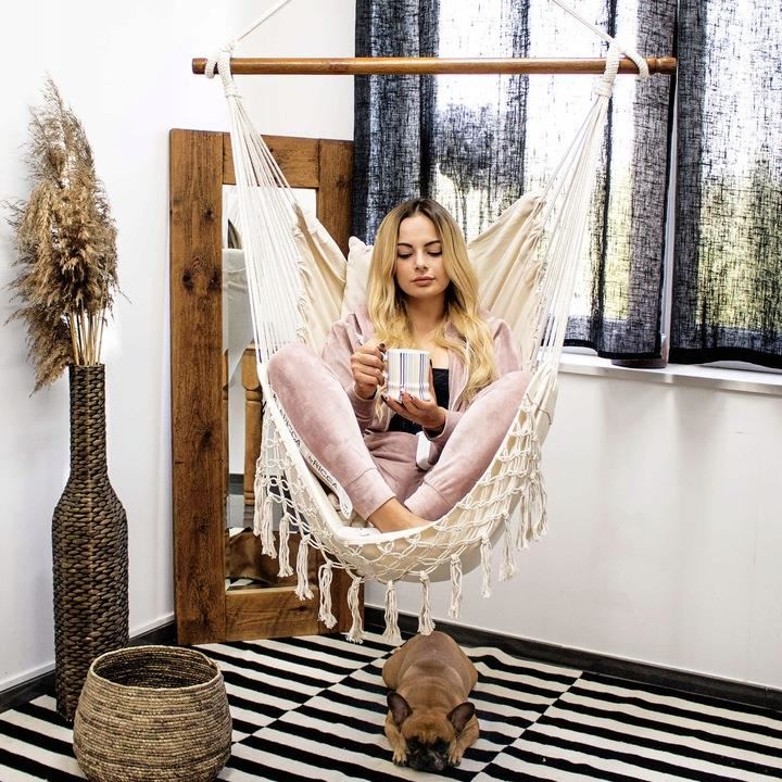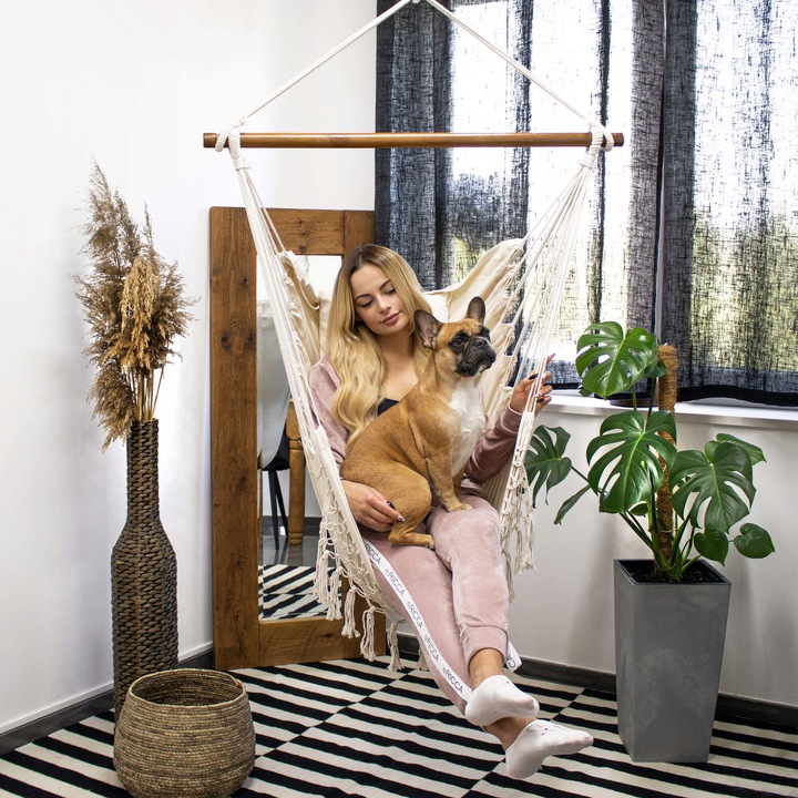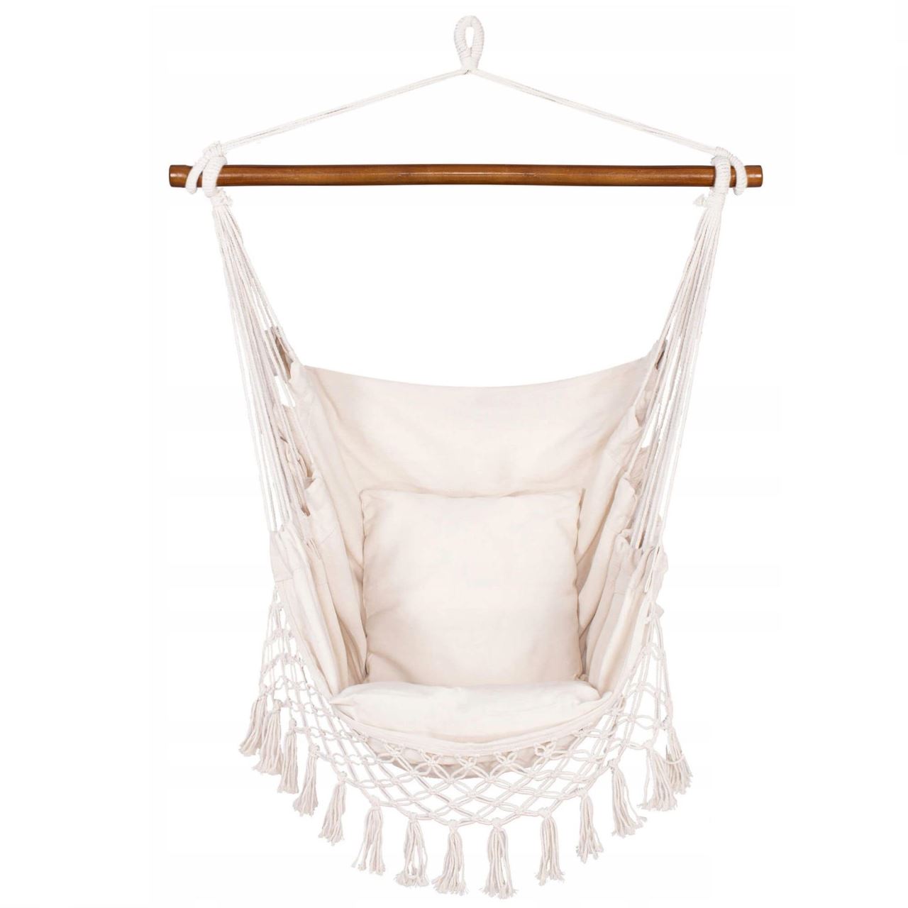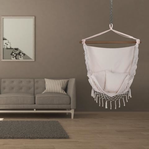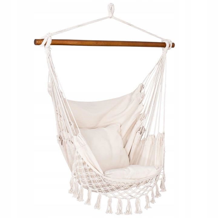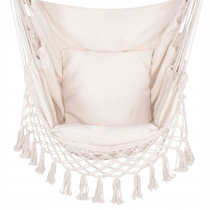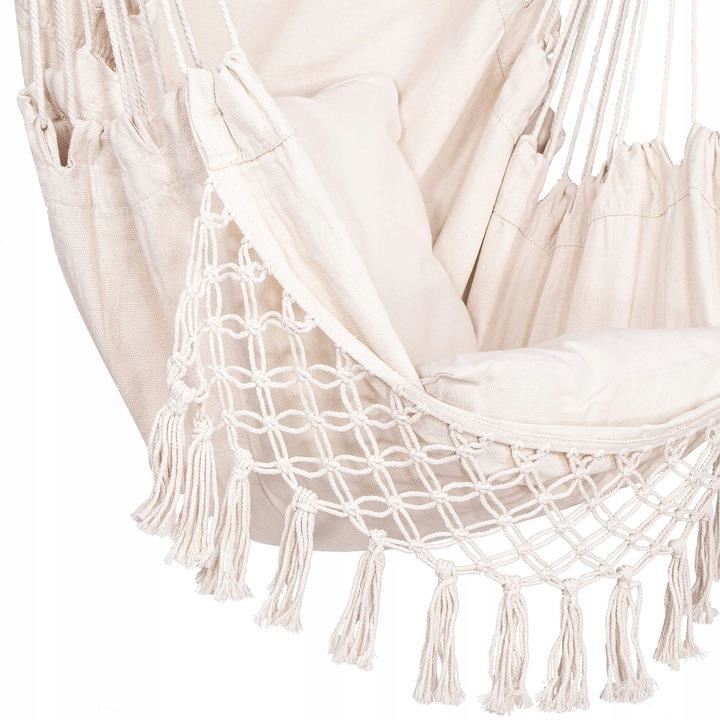 Hamac tip scaun, cu franjuri, cu 2 perne, bej, max 150 kg, 130x100 cm, Springos