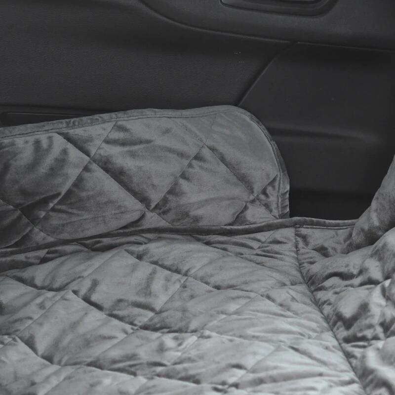 Husa bancheta auto pentru protectie si transport caini, catifea si bumbac, gri, 165x145 cm
