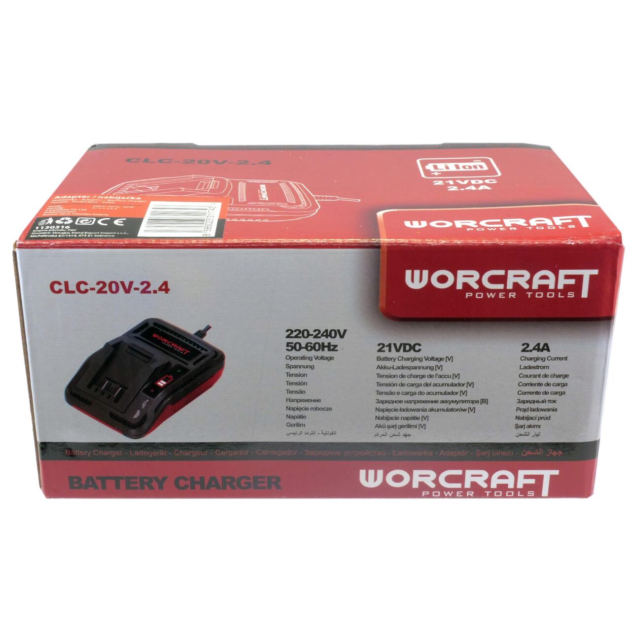 Incarcator pentru acumulator 20V 4 Ah Li-ion compatibil pentru sculele electrice de mana WORCRAFT care se livreaza fara acumulator: Masina de gaurit si insurubat-cod 113900, Polizor unghiular-cod 113904, Fierastrau pendular cod-114336, Circular de mana cod-114323, Fierastrau tip sabie cod-114028, Multifunctional cod-119035.