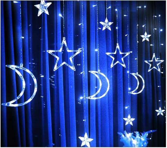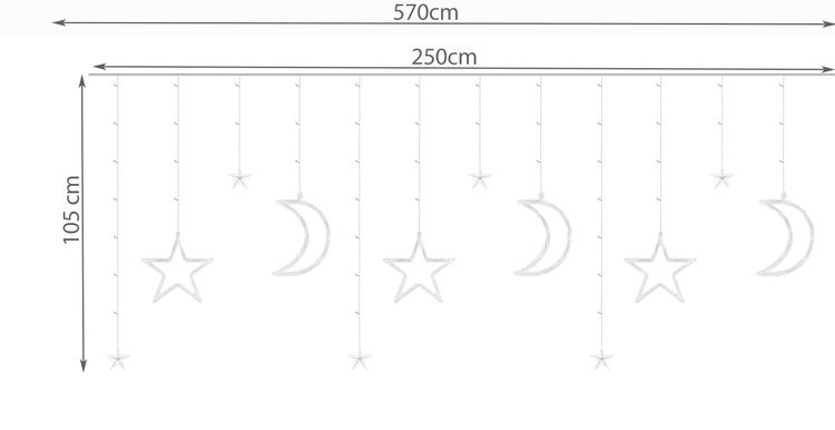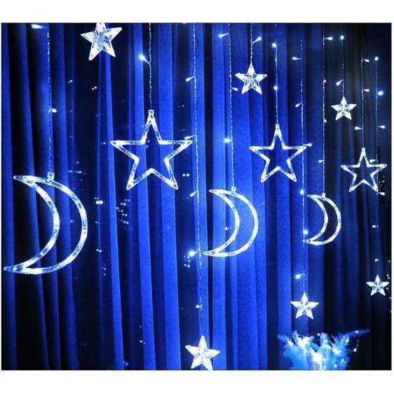 Instalatie luminoasa tip perdea, model stea si luna, alb rece, 8 moduri iluminare, interior-exterior, IP44, 138 LED, 2.5 m