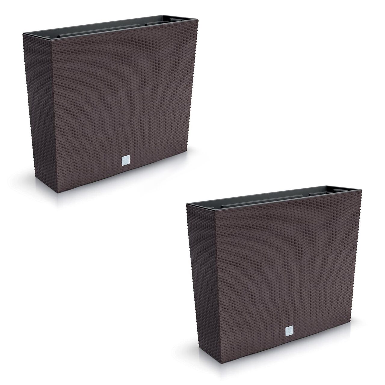 Jardiniera decorativa, imitatie ratan, Rato Case, maro, set 2 buc, 58x18x49.8 cm