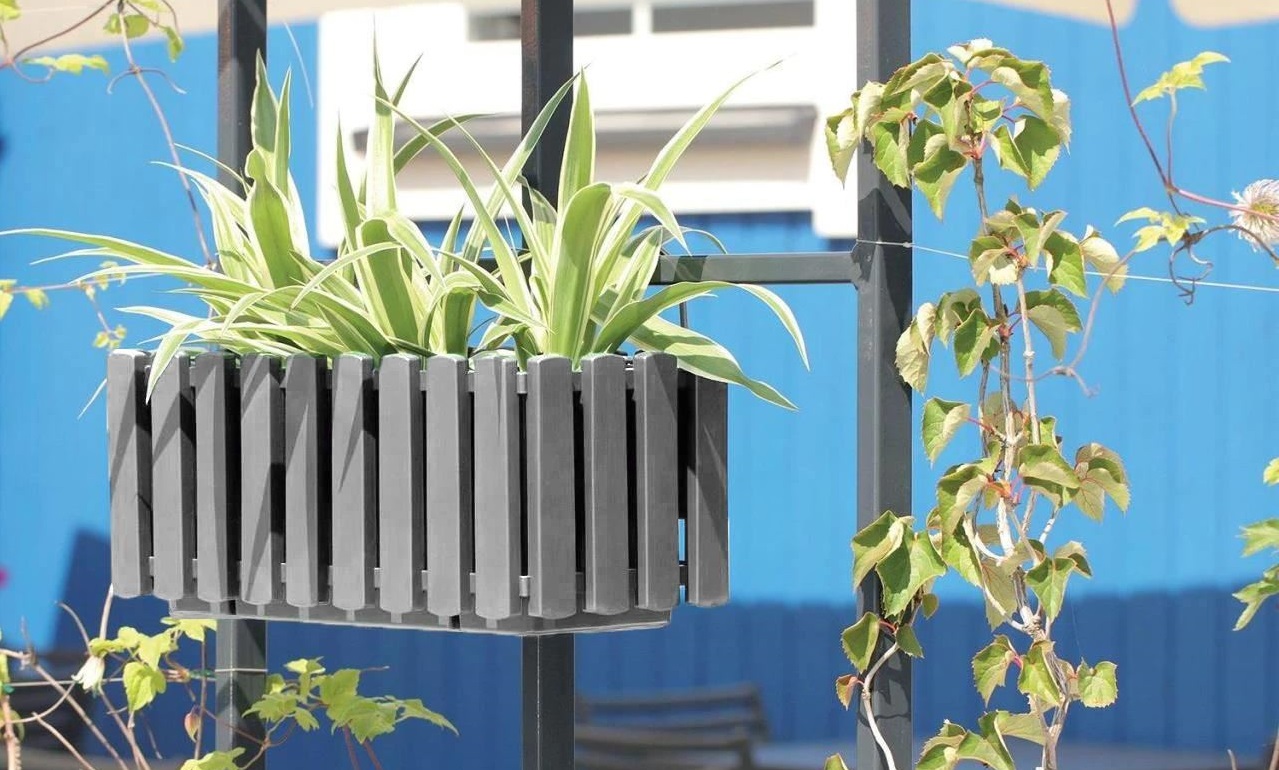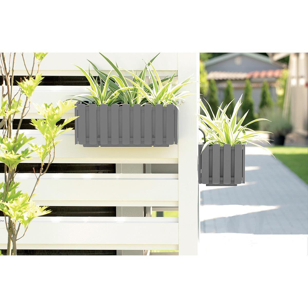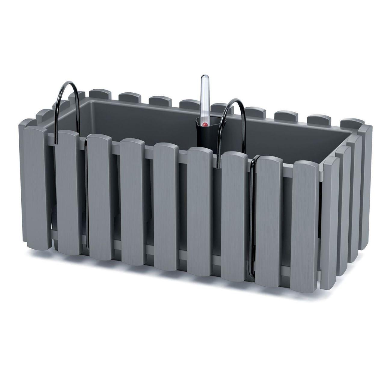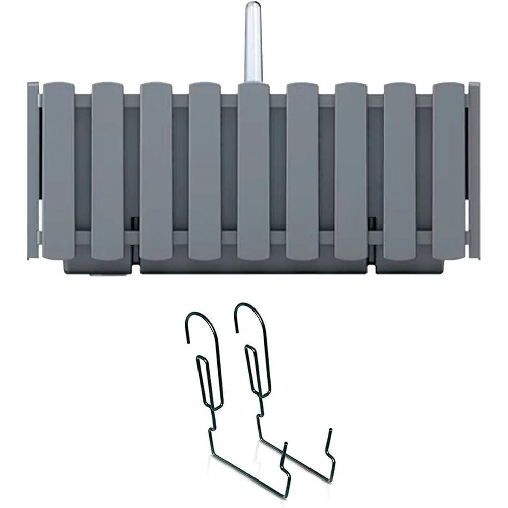 Set 2 jardiniere decorative cu suport metalic, sistem irigare, gri, 38x18x16.2 cm, Boardee Fencycase W
