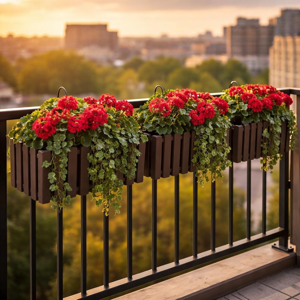 Montaj Sigur si Rapid: Pachetul contine suporti metalici rezistenti, proiectati sa sustina greutatea jardinierei pline cu pamant si apa, asigurand o fixare ferma pe orice balustrada standard.