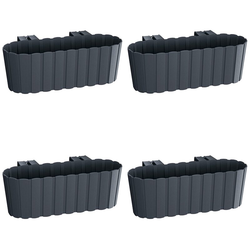 Set 4 jardiniere decorative cu suport de plastic, antracit, 4.9 L, 38.3x21.2x13 cm, Boardee Hook