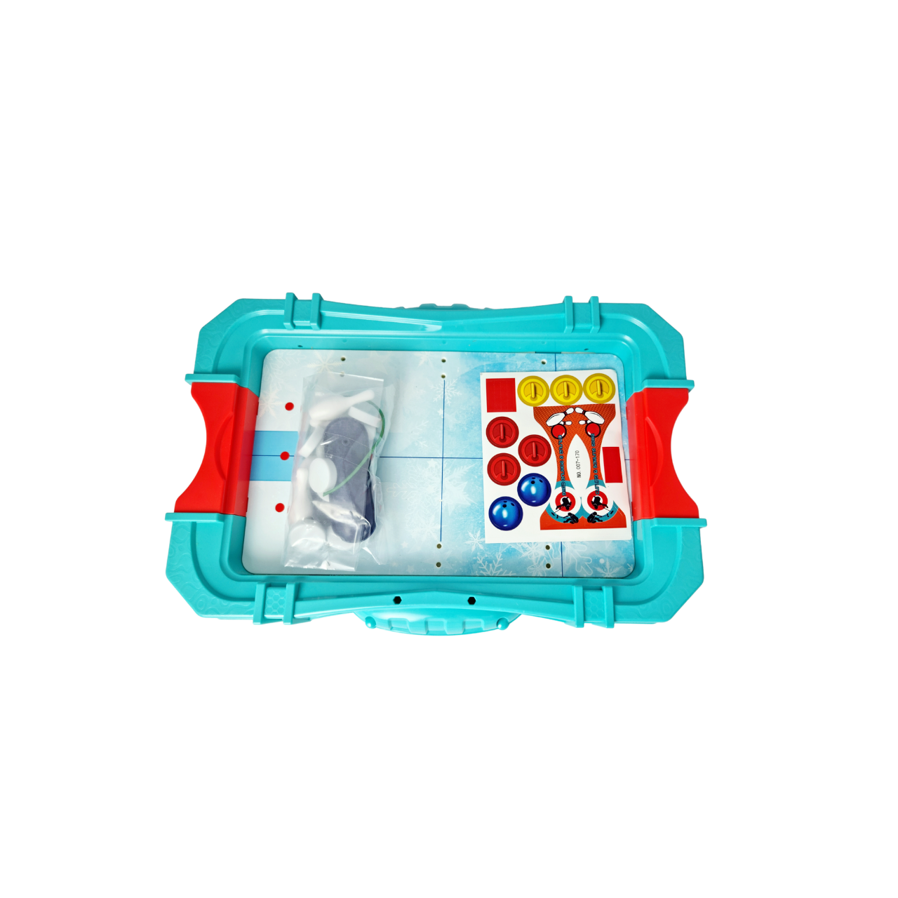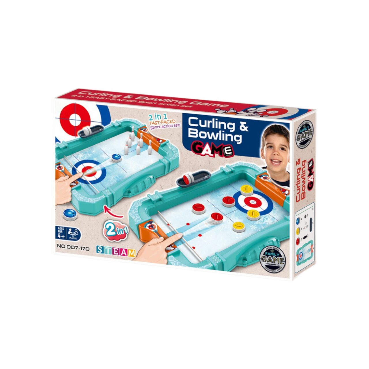 - Curling: scopul jocului este de a pune in miscare piesele rotunde si de a le directiona cat mai aproape de centrul tintei desenate pe spatiul de joc, denumita casa