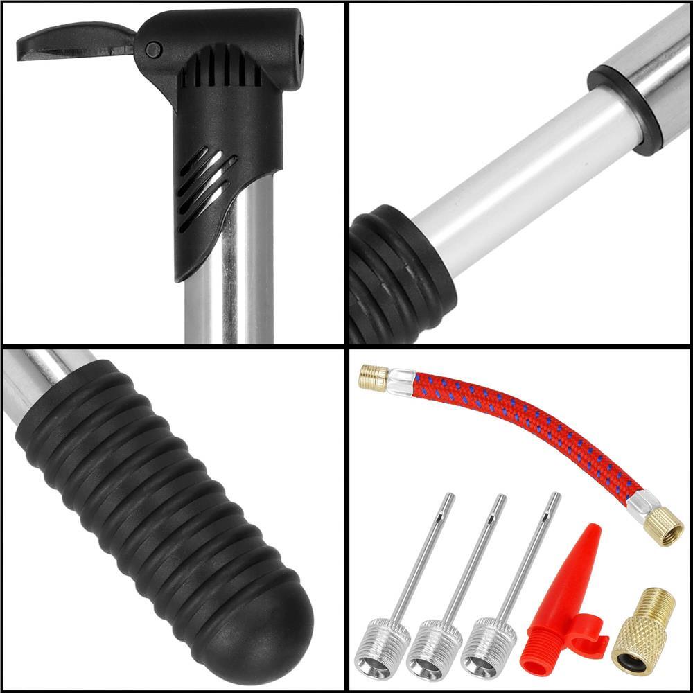 - Setul include 7 elemente, inclusiv 3 ace pentru umflarea mingilor, un adaptor pentru articole gonflabile si un furtun pentru umflare. In plus, adaptorul FV/DV si AV va permite sa umflati cauciucurile de bicicleta cu diferite supape. Datorita acestui fapt, pompa nu este doar un accesoriu grozav pentru pasionatii de ciclism, ci si pentru iubitorii de fotbal sau fanii campingului, unde saltelele gonflabile reprezinta un accesoriu de baza.