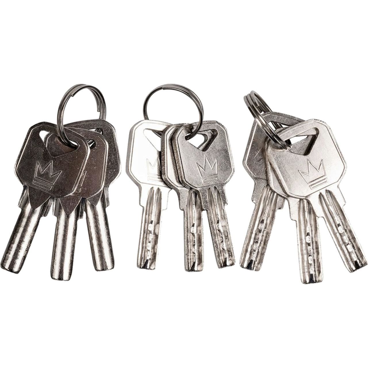 - Setul include 3 seturi de chei, cate 3 piese fiecare cu un inel.
