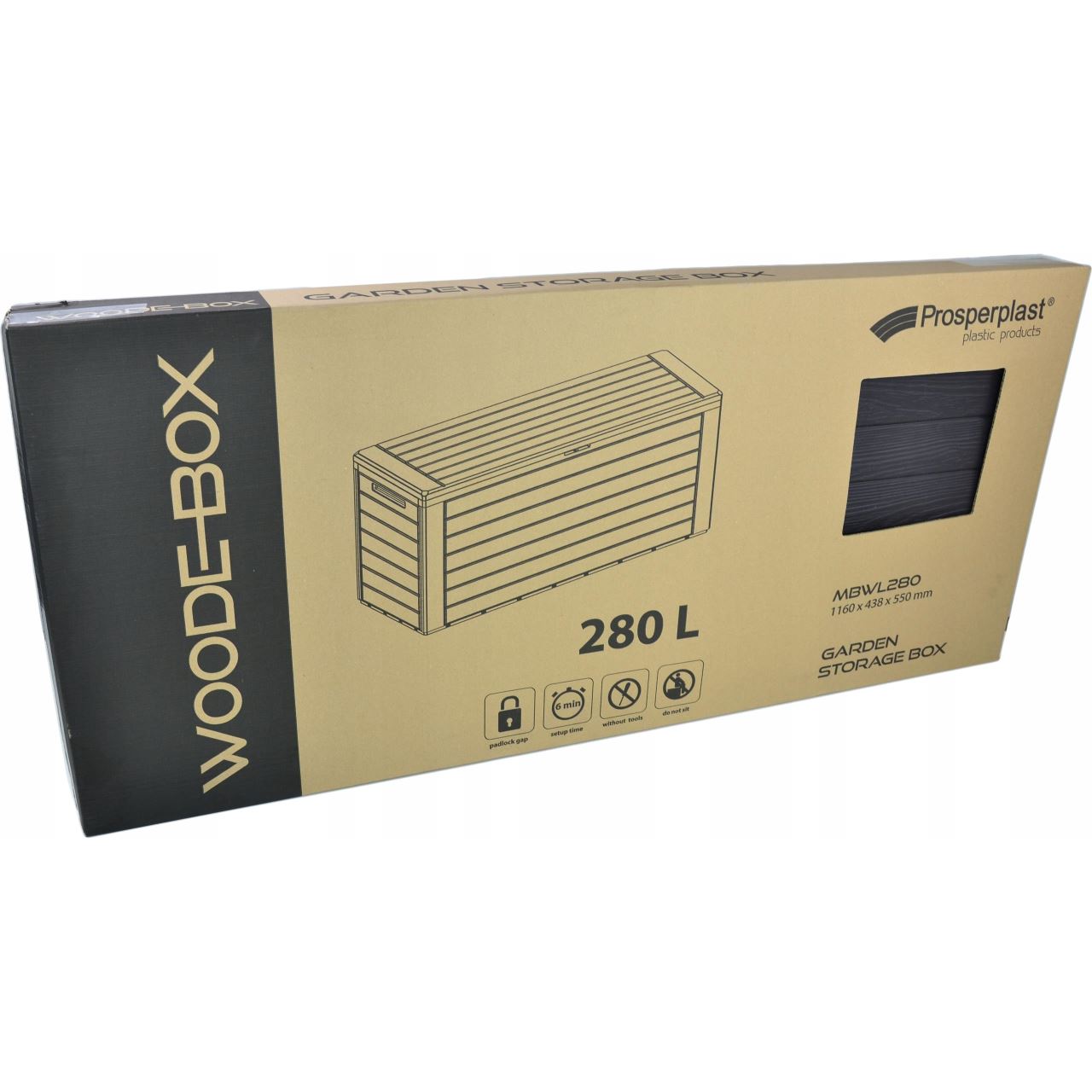 Lada de depozitare este spatioasa si este realizata din plastic de inalta calitate, care imita perfect lemnul natural.