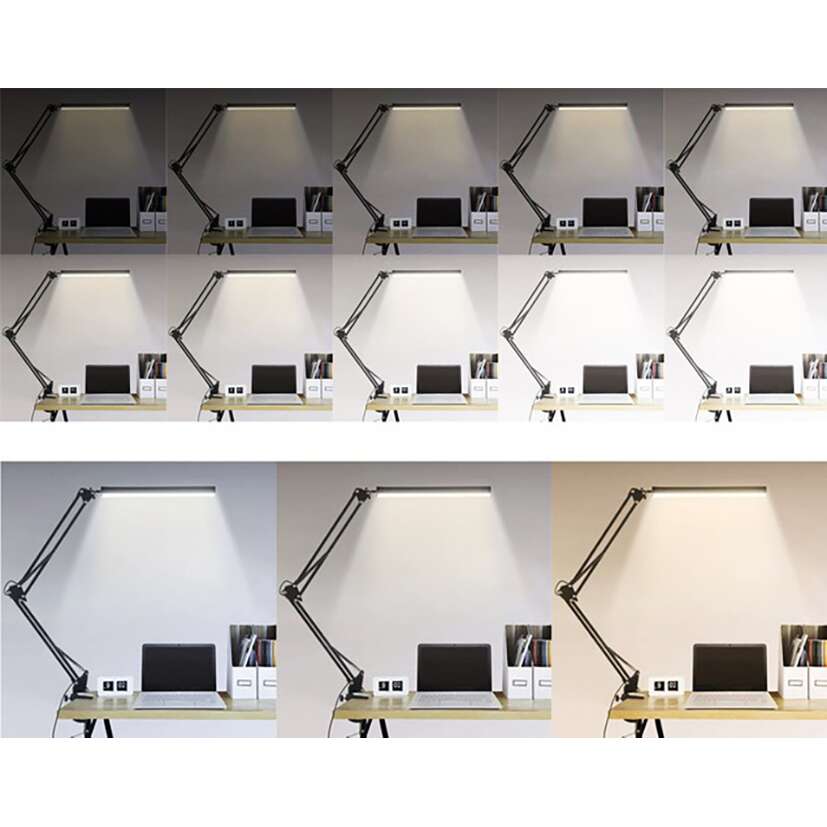 Lampa de birou 2 in 1, cu prindere masa, brat flexibil, 3 culori lumina, 10 niveluri, USB, negru, 3x37 cm, Izoxis
