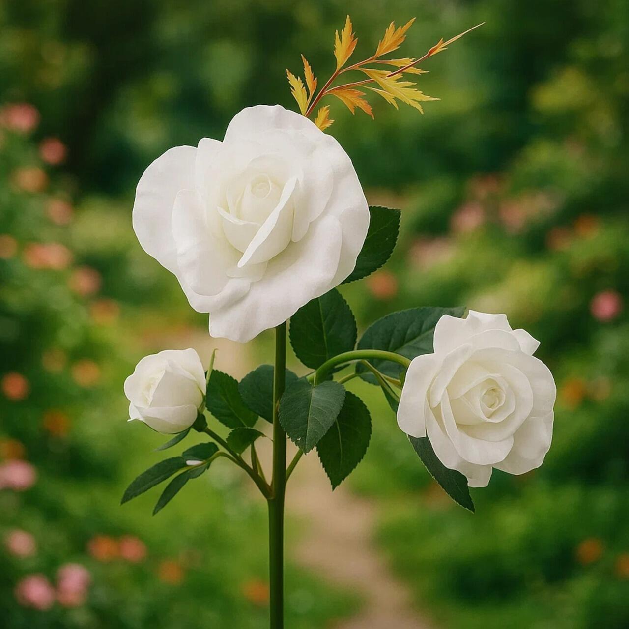- Decor natural realist: Forma de trandafir cu trei flori se integreaza perfect in gradina, imitand florile reale
