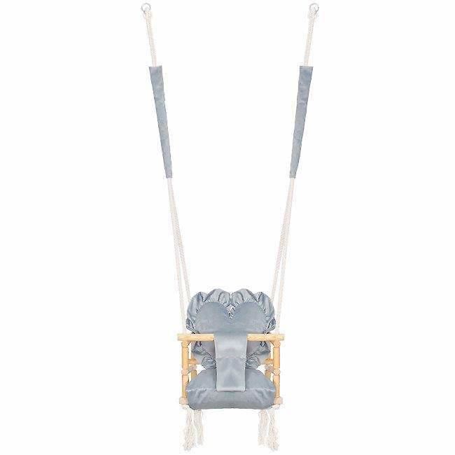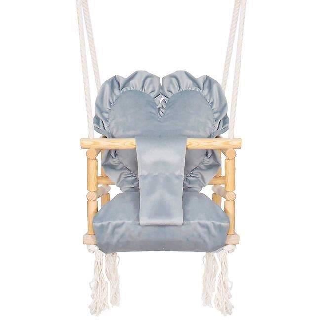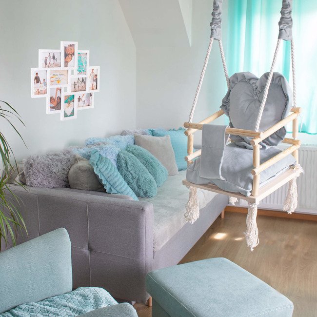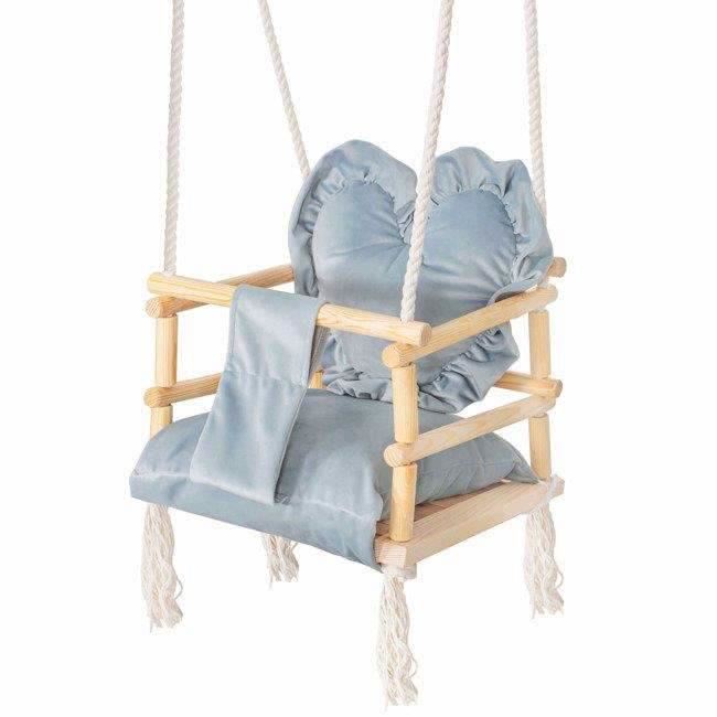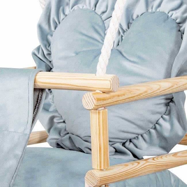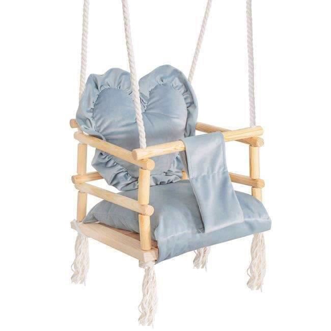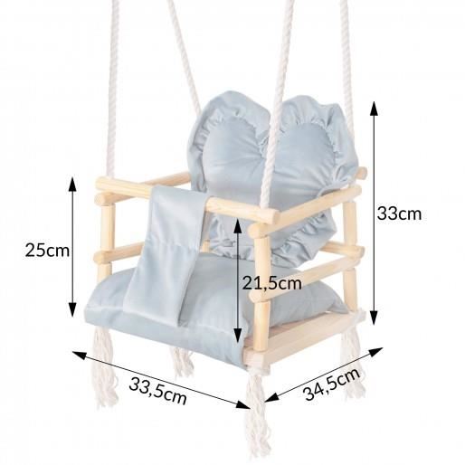 Leagan pentru copii, lemn, perna inima albastru deschis, 33.4x34.5x25 cm, Springos