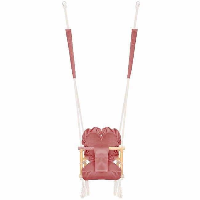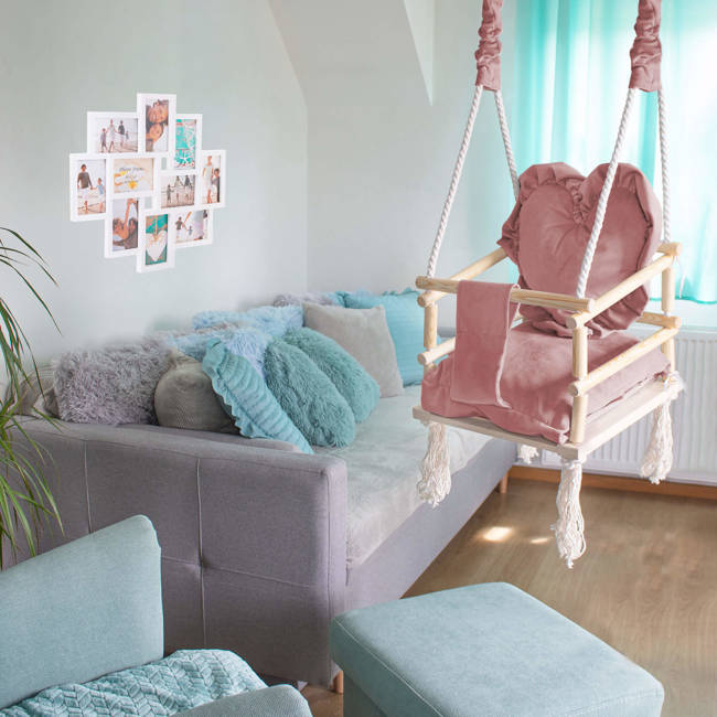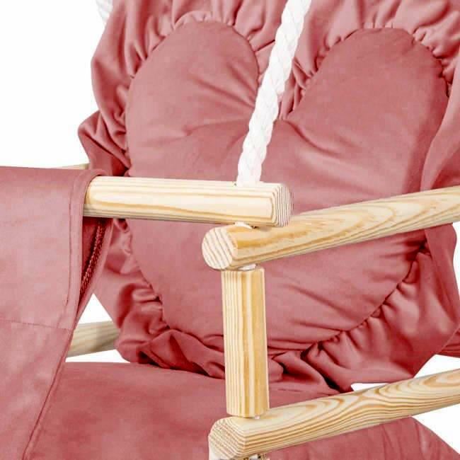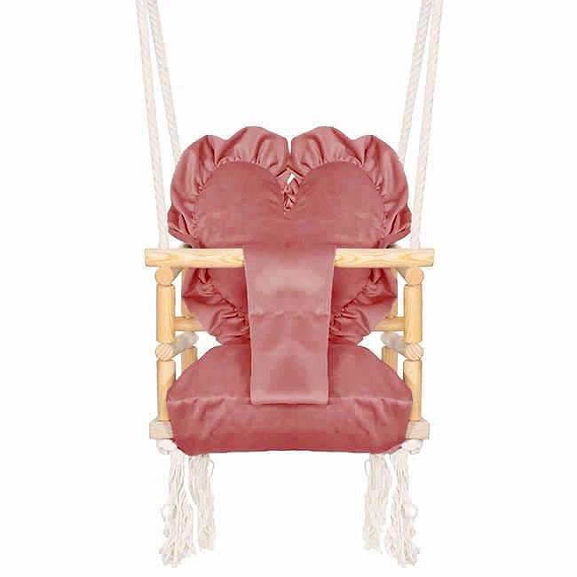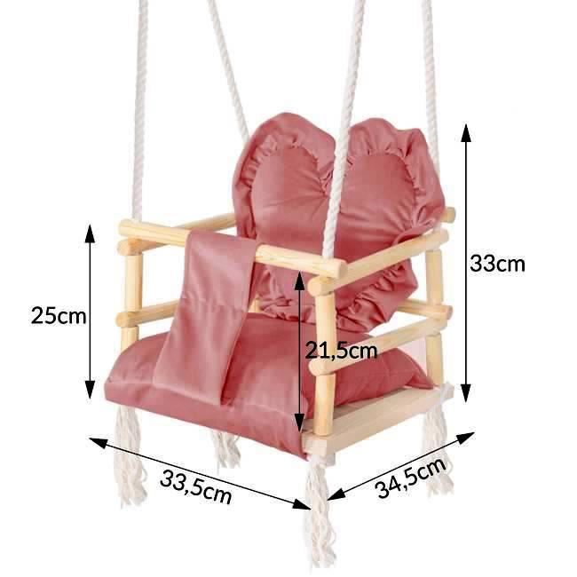 Leagan pentru copii, lemn, perna inima roz, 33.4x34.5x25 cm, Springos