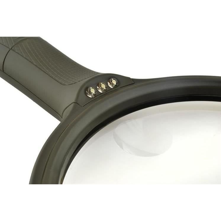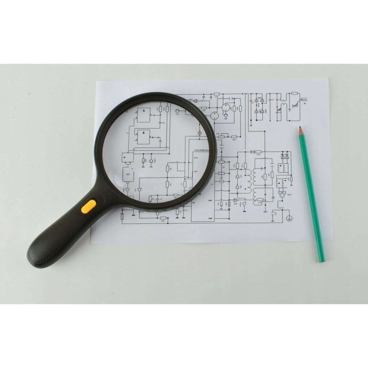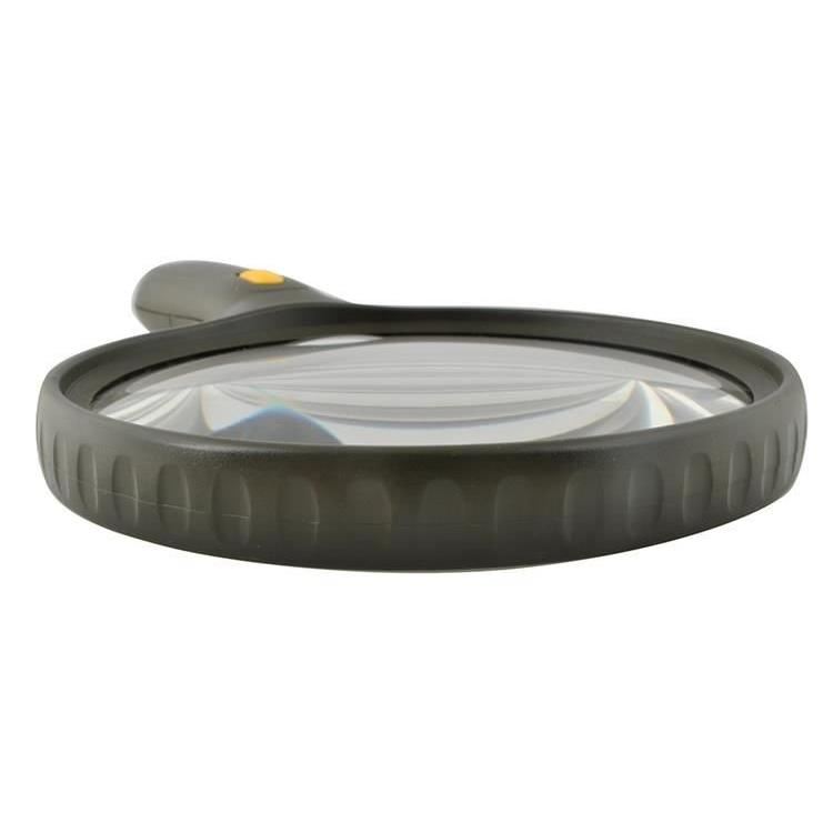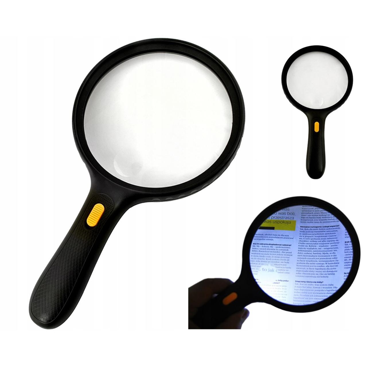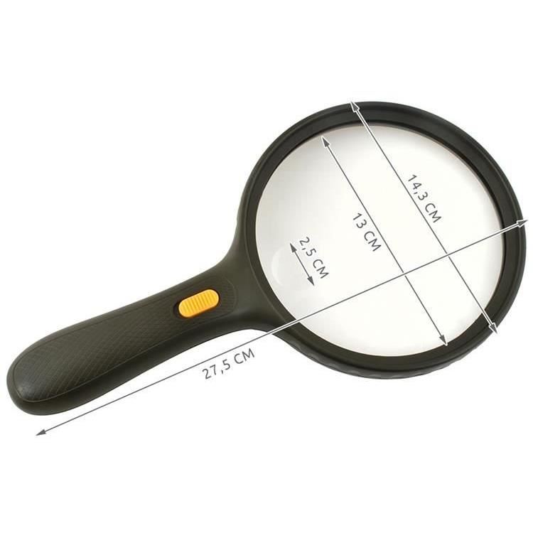 Diametrul lentilei va permite sa mariti o cantitate mare de text fara a fi nevoie sa mutati intens lupa peste imaginea marita. Marirea suplimentara este posibila datorita unei lentile suplimentare, mai mici, situate in sticla principala. Lupa are si propria sursa de lumina sub forma a trei LED-uri. Sunt activate de un comutator situat pe maner si lumina emisa de acestea cade direct sub lentila.