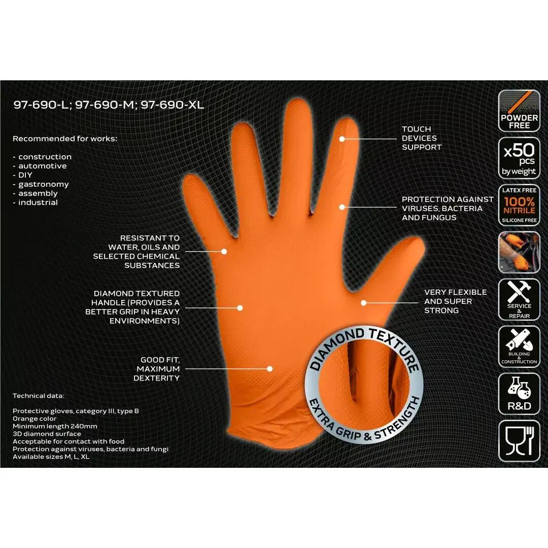 Manusi nitril, unica folosinta, portocaliu, set 50 buc, marimea L, NEO