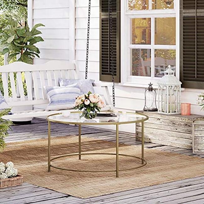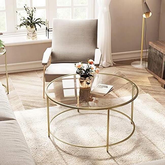 Masa de cafea, Artool, cu raft depozitare din sticla, rotunda, otel, auriu, 84x45.5 cm